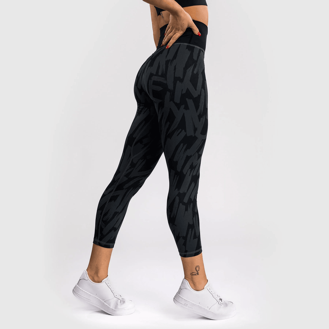 дамските легинси до глезените Venum Graffiti - градски въглища са перфектни както за тренировки с висока интензивност, така и за ежедневен стил. високата талия осигурява максимален комфорт и сигурност, докато леката материя позволява неограничено движение. независимо дали се състезавате на ринга или отивате на йога клас, тези легинси са вашият избор.