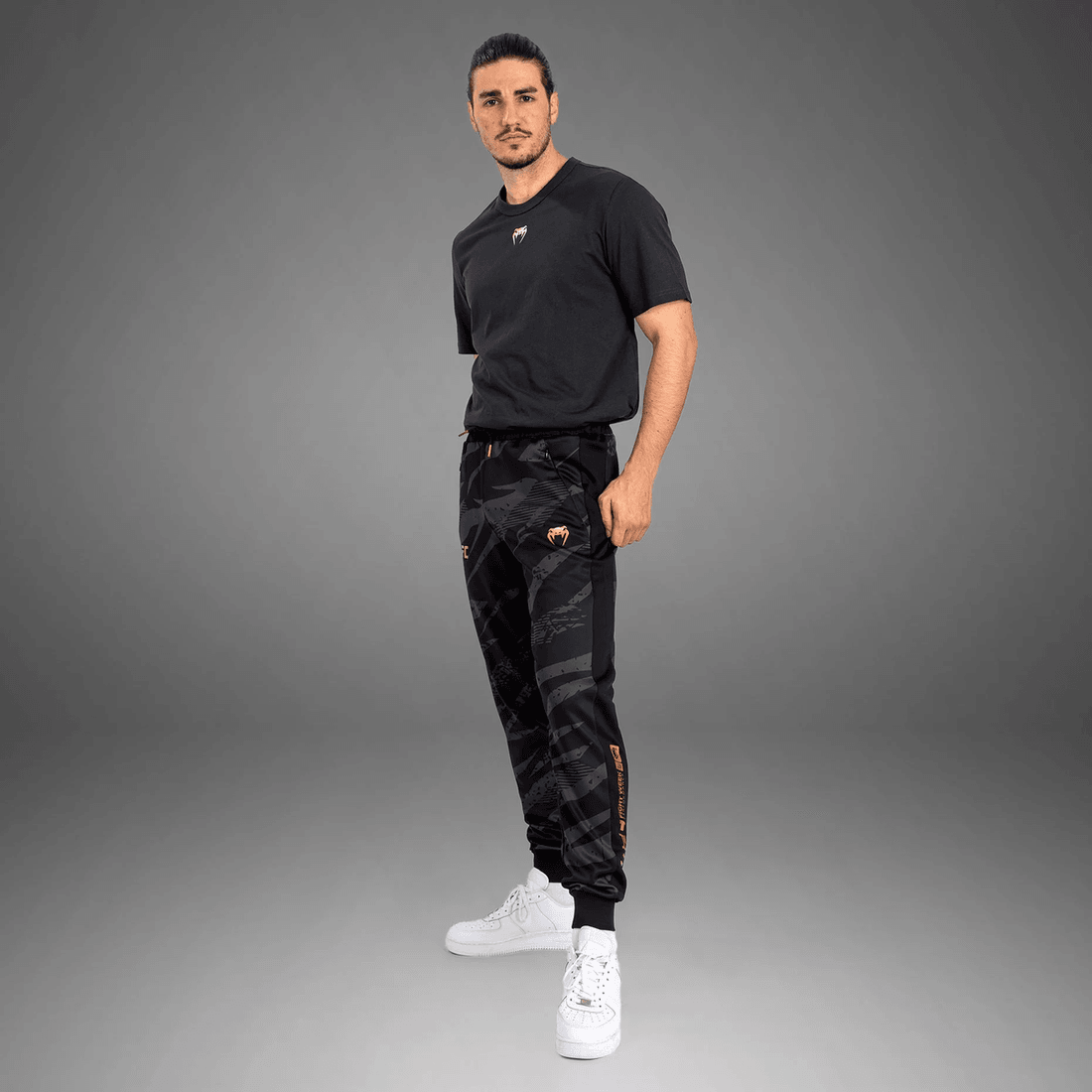 - dristigt Design: Iøjnefaldende Urban Camo Print Med Bronze Venum Og Ufc Logoer.