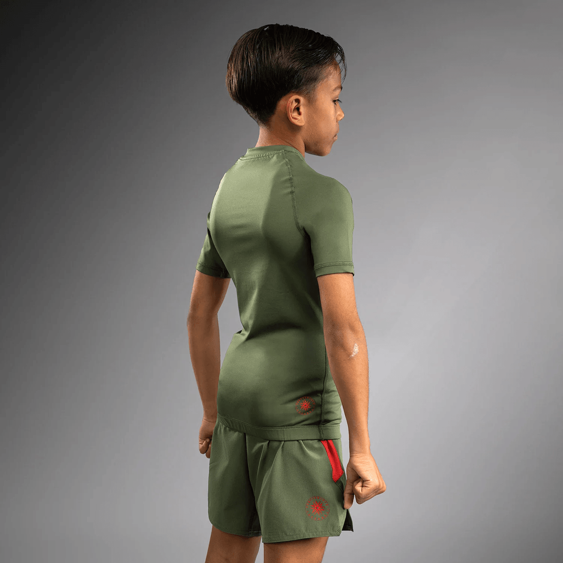 den venum Contender Kids Rashguards Short Sleeves I Army Green/orange Er Designet Til At Forbedre Ydeevnen Og øge Selvtilliden. Uanset Om Dit Barn Sparrer I Jiu-jitsu Eller Træner Til Mma, Giver Denne Rashguard Den Nødvendige Støtte Og Fleksibilitet. Kompressionsstoffet Fremmer Muskelgenopretning, Hvilket Muliggør Længere Træningssessioner Uden Ubehag.