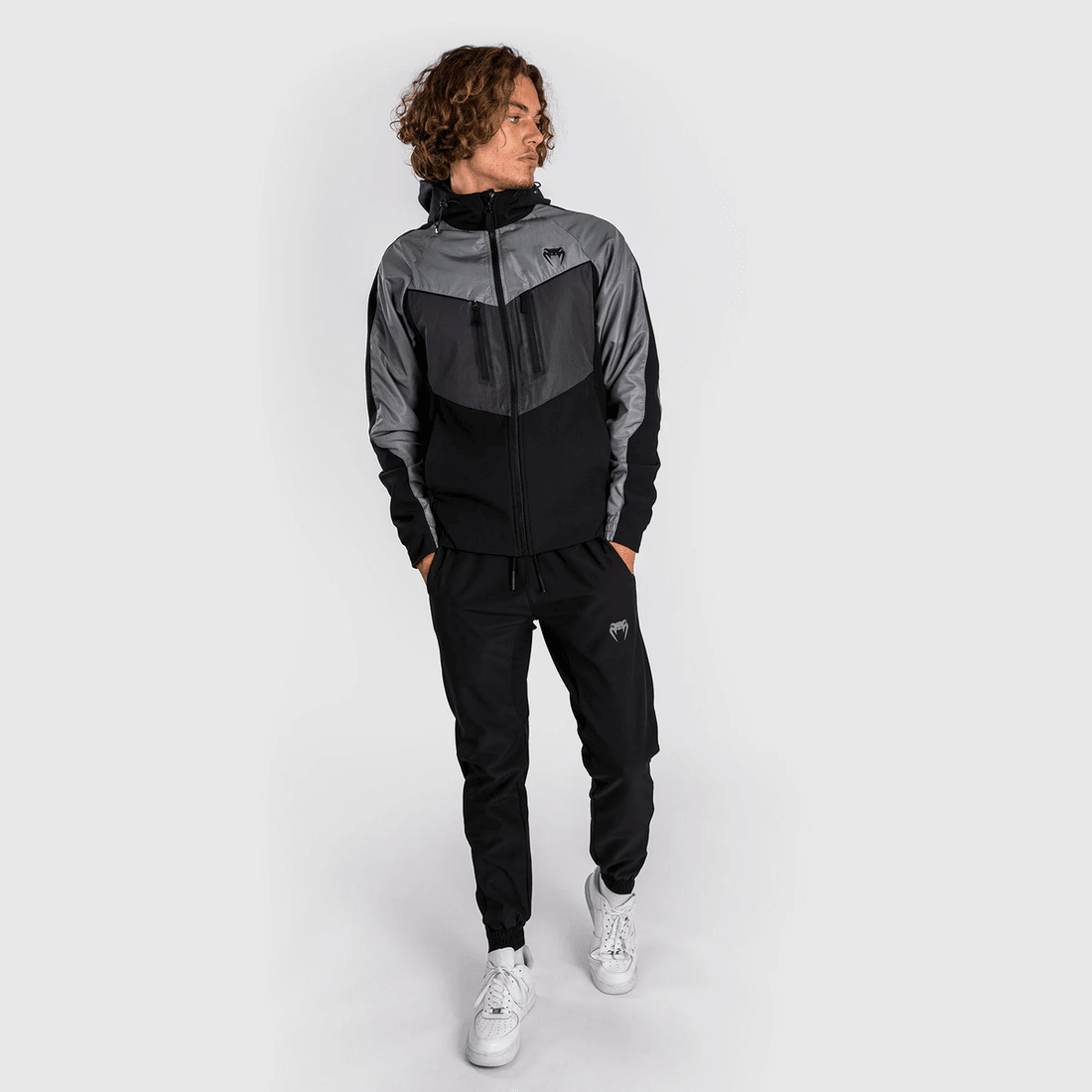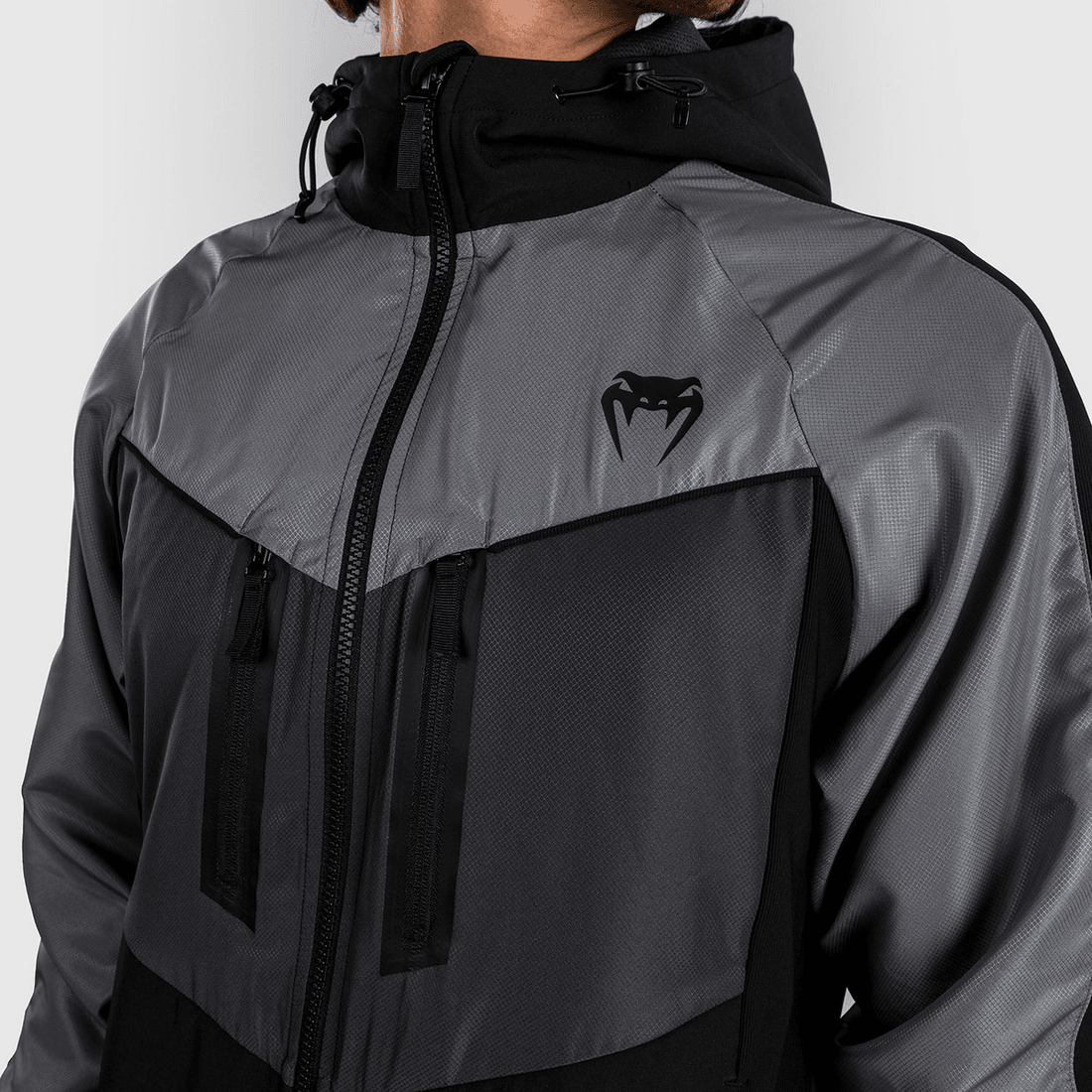 - Auffälliges Design: Kräftige Schwarze Reißverschlüsse Und Das Venum-Logo Kontrastieren Wunderschön Mit Dem Grauen Stoff.