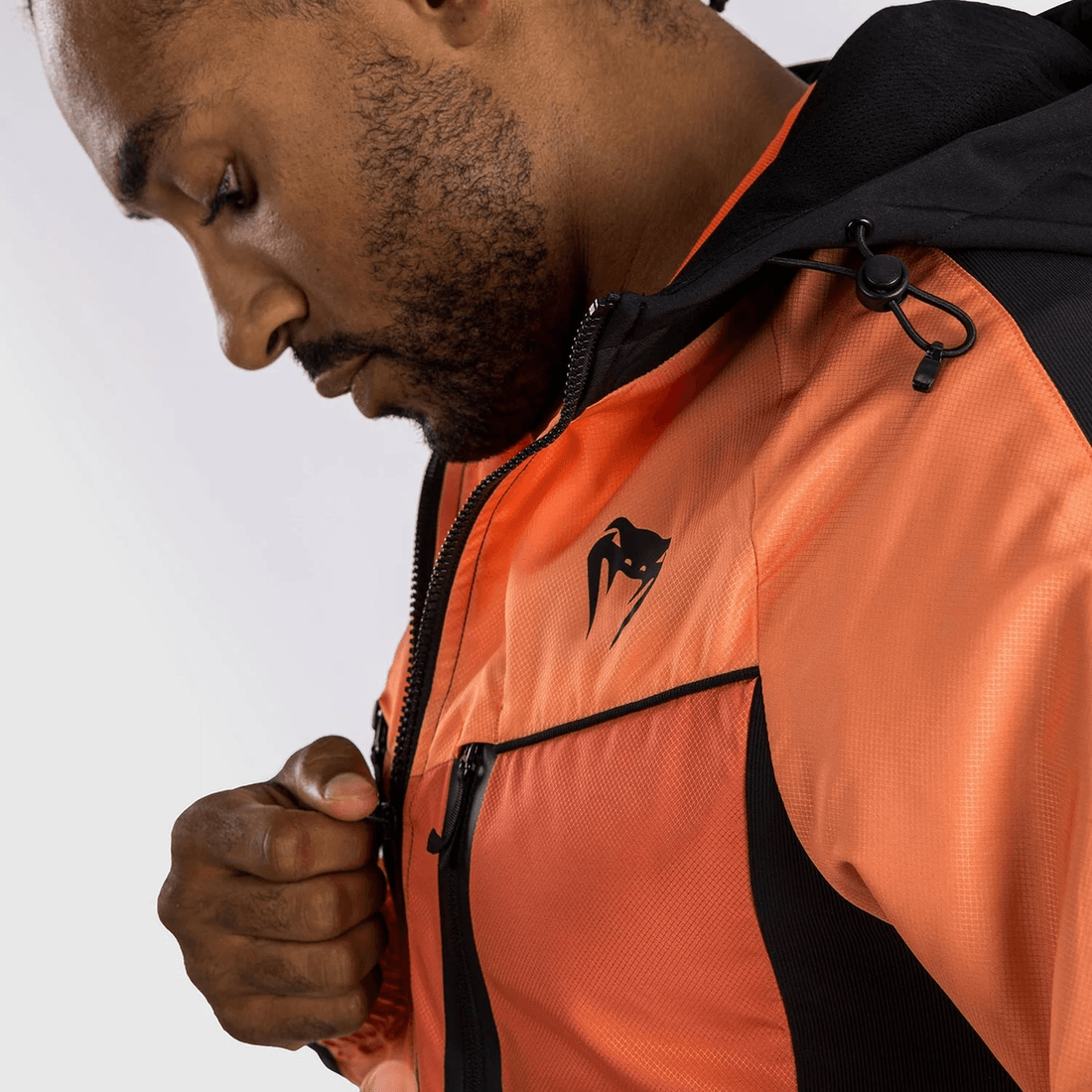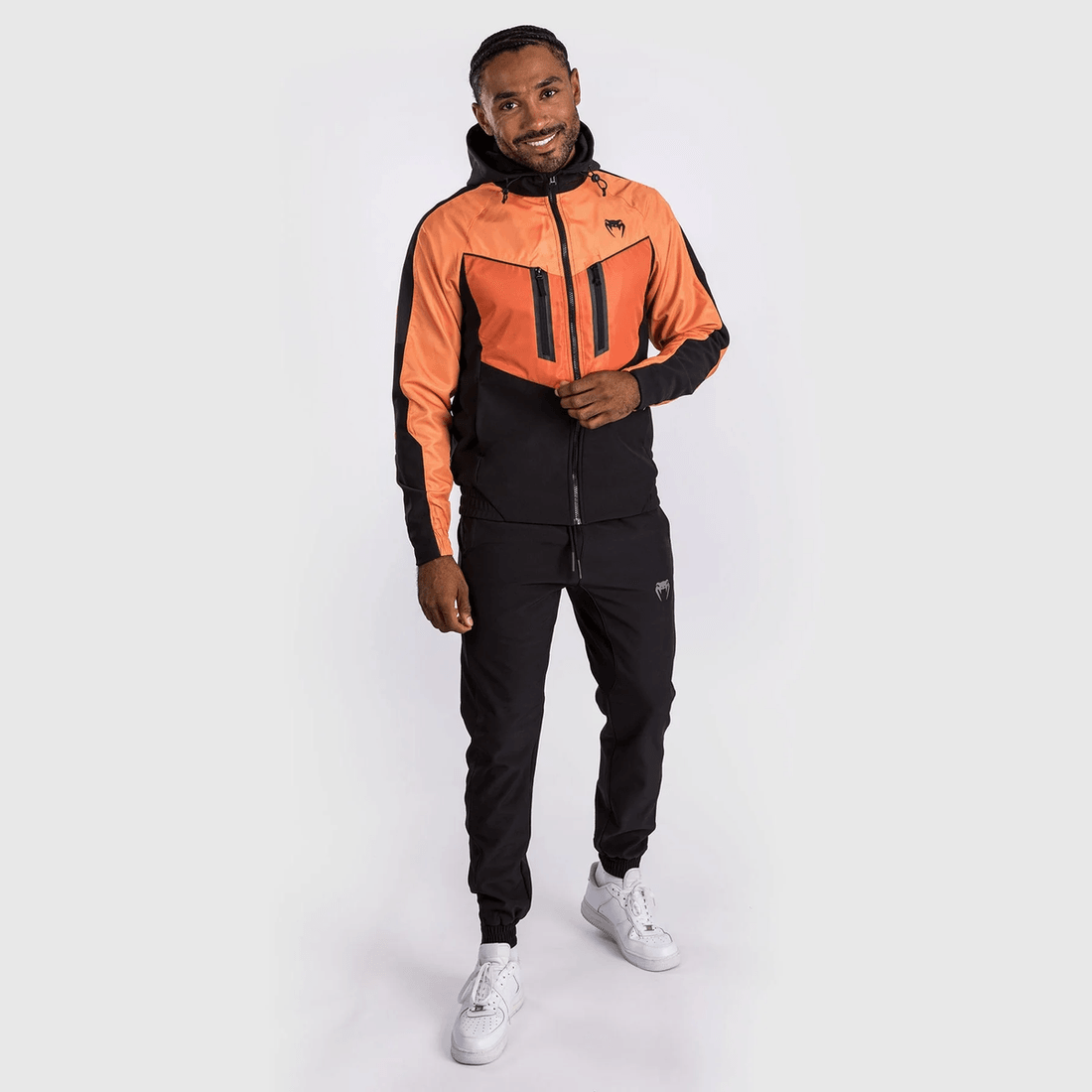 die venum Laser 3.0 Track Jacket Ist Fachmännisch Aus Hochwertigem, Atmungsaktivem Material Gefertigt, Das Maximale Beweglichkeit Ermöglicht. Das Winddichte Brustpaneel Bietet Zusätzlichen Schutz Bei Kühleren Temperaturen Und Macht Sie Zu Einem Unverzichtbaren Stück Für Outdoor-workouts Oder Lässige Ausflüge. Die Verstellbare Kapuze Sorgt Für Eine Enge Passform, Während Das Auffällige Schwarz-orange Design Dafür Sorgt, Dass Sie überall Auffallen.