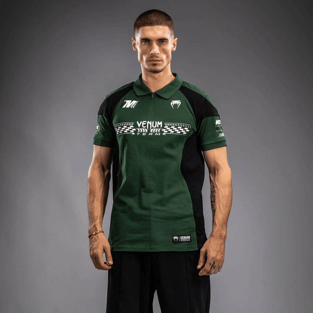 το venum Motorsport Cotton Polo - βαθύ δάσος είναι σχεδιασμένο για όσους αντλούν ενέργεια από την αδρεναλίνη. με το μοναδικό του κολάρο με φερμουάρ, αυτό το Polo Shirt όχι μόνο φαίνεται υπέροχο αλλά προσφέρει και λειτουργικότητα κατά τη διάρκεια υψηλής ενέργειας δραστηριοτήτων. οι μαύρες και λευκές ετικέτες είναι μια αναφορά στην κληρονομιά των μηχανοκίνητων σπορ της Venum, κάνοντάς το μια εξαιρετική επιλογή για τους λάτρεις των μηχανοκίνητων σπορ και τους αναζητητές του στυλ.