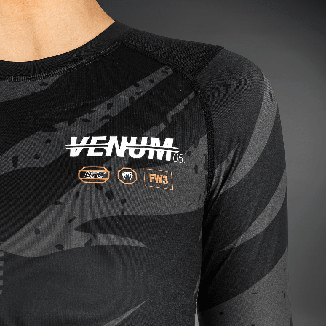 eleva Tu Entrenamiento Con El ufc Adrenaline By Venum Fight Week Women's Performance Long Sleeve Rashguard - Urban Camo. Esta Rashguard De Alto Rendimiento Está Diseñada Para Atletas Femeninas Feroces Que Exigen Comodidad Y Protección Durante Sesiones Intensas De Grappling.