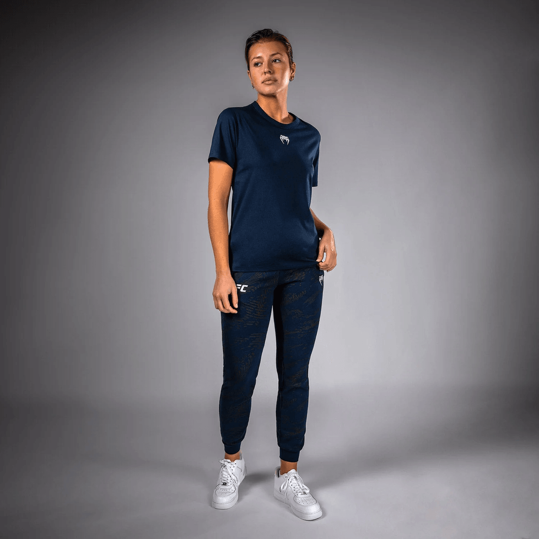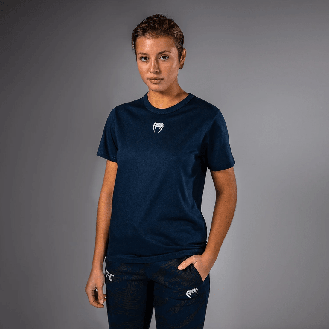descubre La Mezcla Definitiva De Estilo Y Rendimiento Con La camiseta De Algodón De Manga Corta Para Mujeres Ufc Fusion By Venum Fight Week En Azul Oceánico Sólido. Diseñada Para La Atleta Moderna, Esta Camiseta Combina Tecnología De Tela Sofisticada Con Elementos De Diseño Audaces Y Primales, Haciéndola Perfecta Tanto Para Entrenar Como Para Relajarse.
