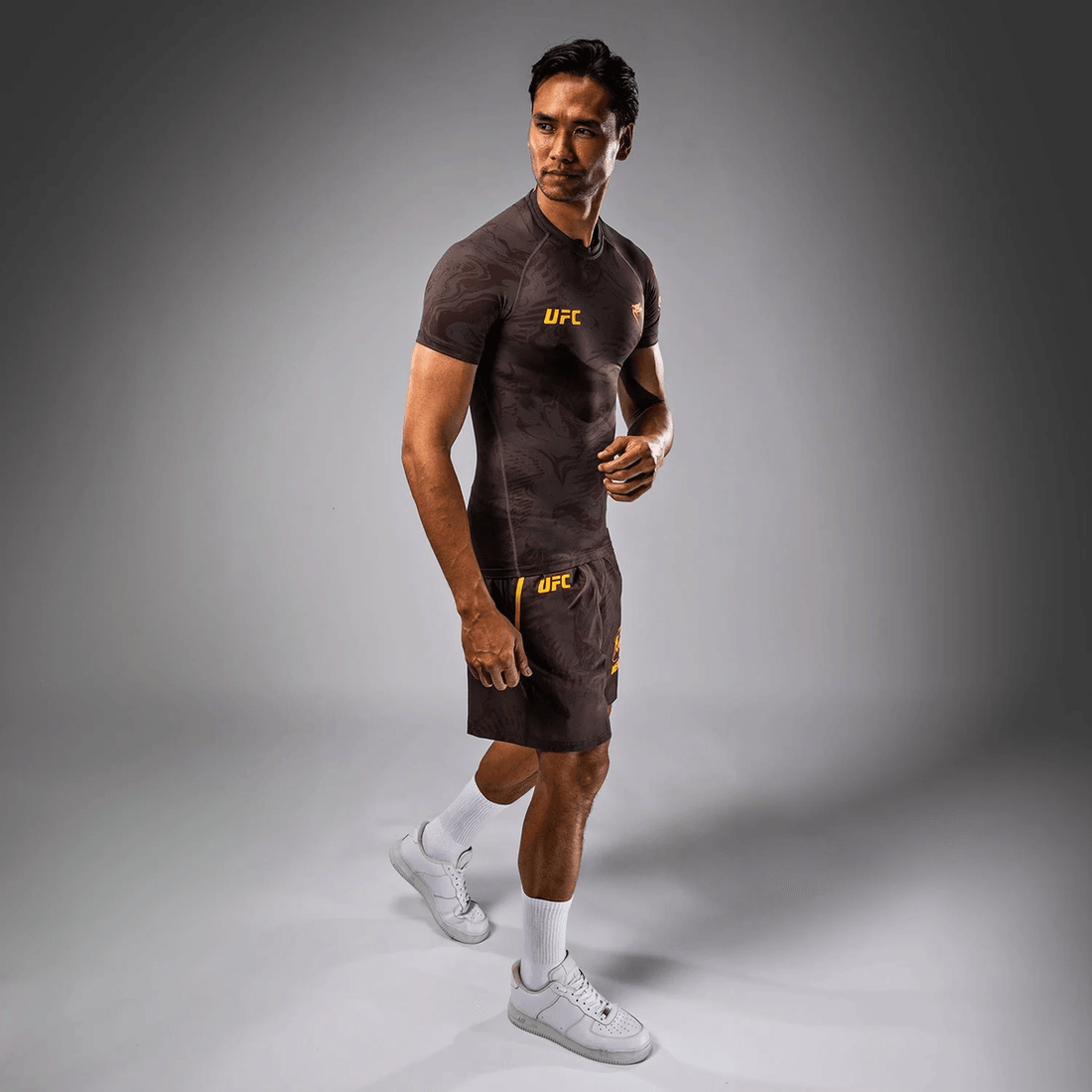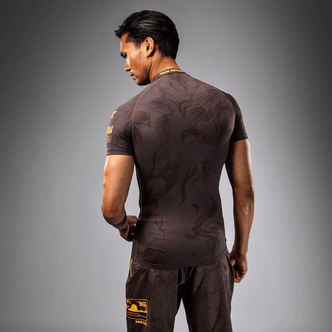 desbloquea Tu Máximo Potencial Con La ufc Fusión Por Venum Semana De Pelea Camiseta De Rendimiento De Manga Corta Para Hombres En Marrón Terracota. Esta Camiseta De Rendimiento, Elaborada Con Maestría, Combina Tejidos Avanzados De Alto Rendimiento Con Un Diseño Impactante, Diseñado Para Atletas Que Exigen Excelencia En La Noche De Pelea.