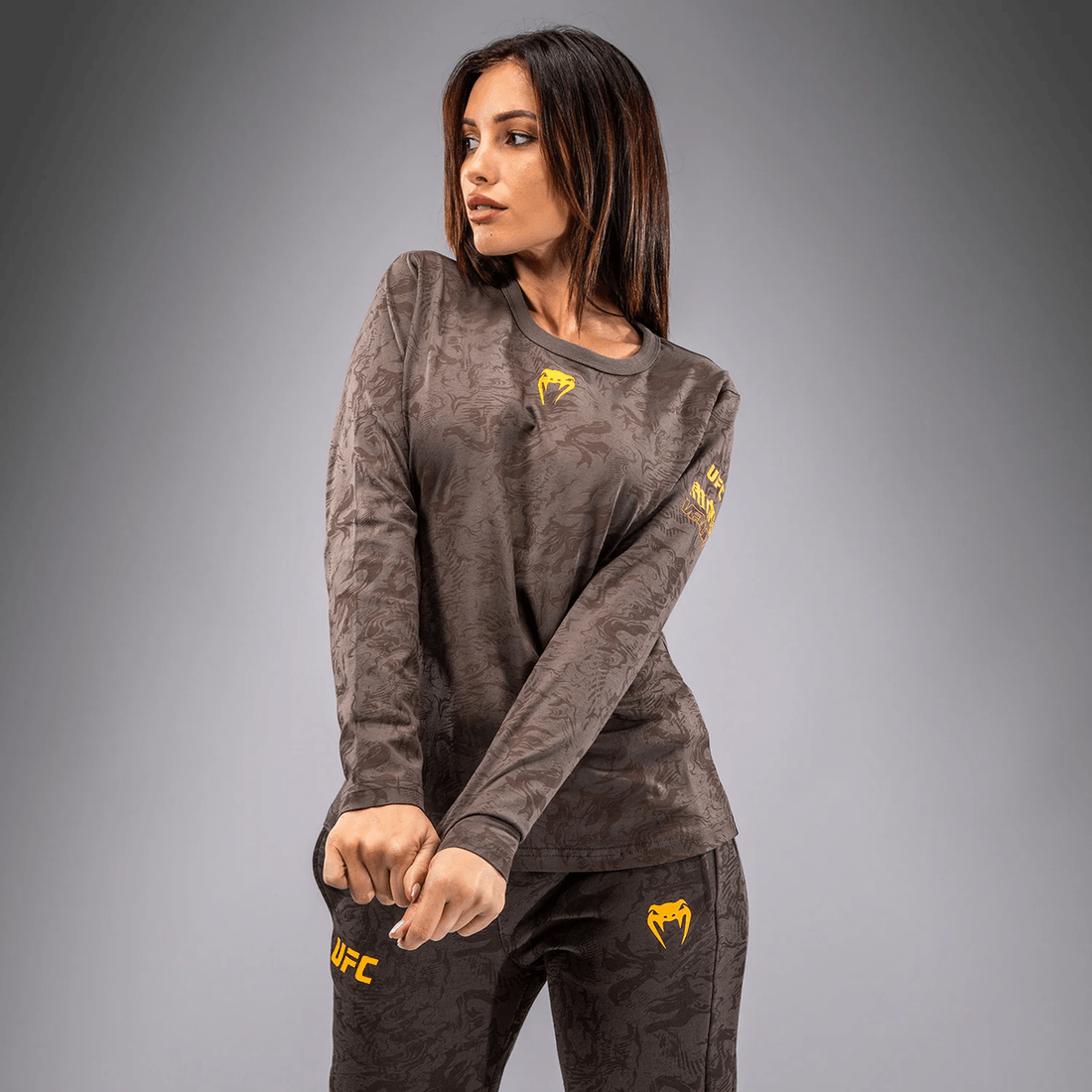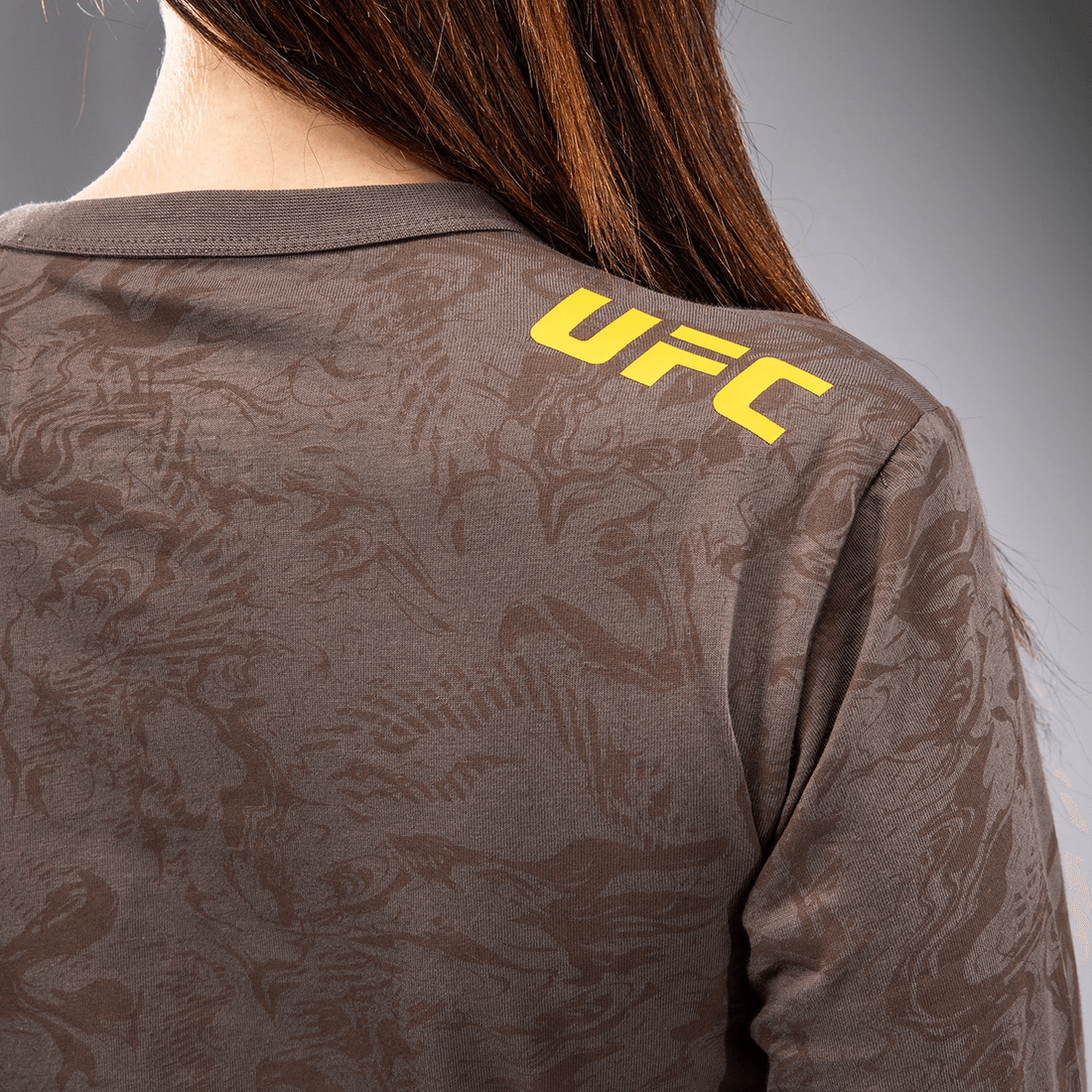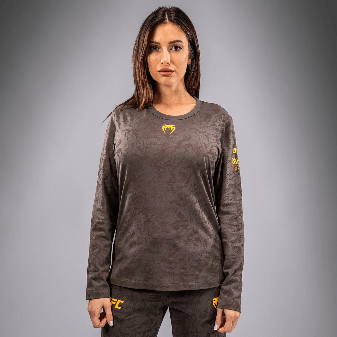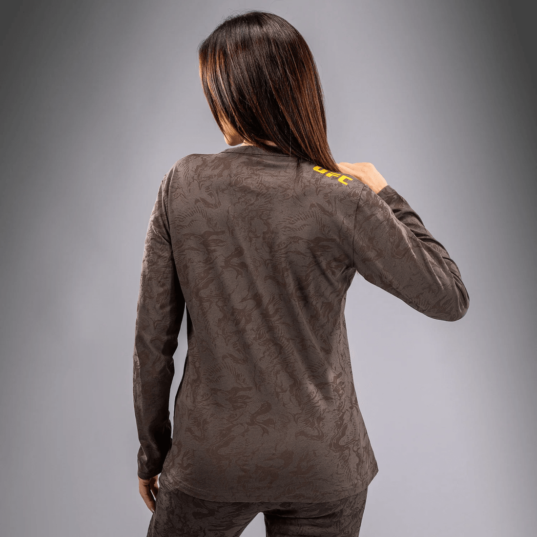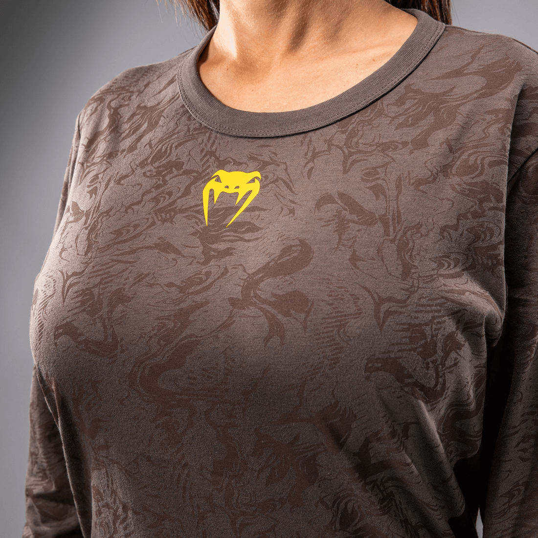 avasta Stiili Ja Soorituse Ideaalne Segu ufc Fusion By Venum Fight Week Naiste Pika Varrukaga Puuvillase T-särgi Abil Maapinna Pruunis. See Ainulaadne Rõivastus On Loodud Sportlastele, Kes Nõuavad Nii Funktsionaalsust Kui Ka Moodi, Peegeldades Looduse Primitiivseid Elemente.