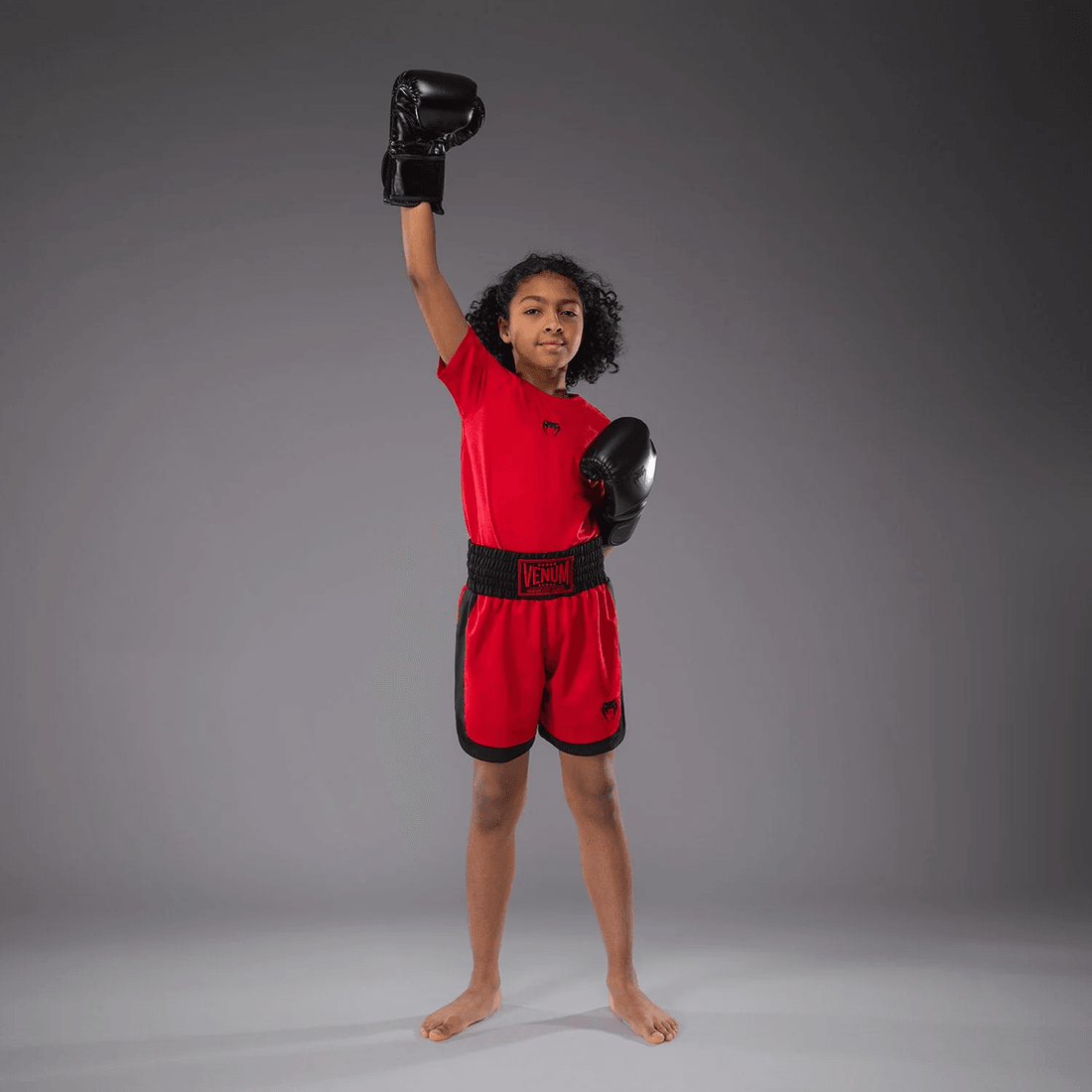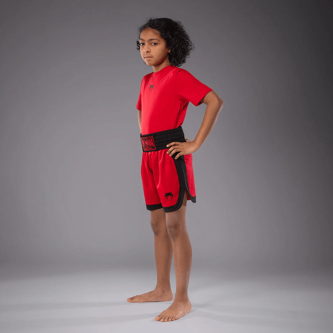 nosta Nuoren Urheilijasi Harjoittelu venum Classic Lasten Nyrkkeilyshortsien - Kirsikkapunainen Avulla. Nämä Asiantuntevasti Suunnitellut Shortsit Yhdistävät Tyylin Ja Toiminnallisuuden, Jolloin Lapsesi Voi Suoriutua Parhaimmillaan Ringissä.