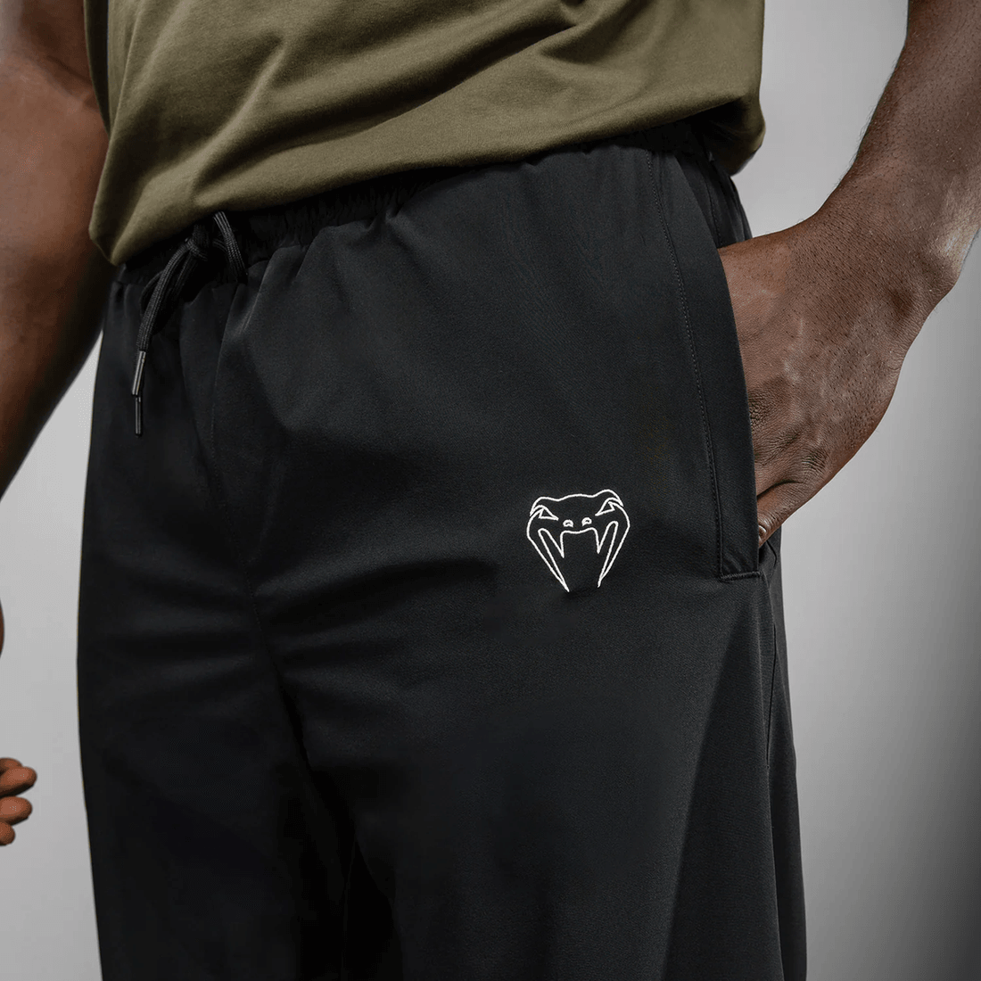 venum Eclipse Joggers - Musta/ivori On Valmistettu Kevyestä Kankaasta, Joka Mahdollistaa Maksimaalisen Liikkumisen Ja Hengittävyyden. Joustava Helma Varmistaa Tiukan Istuvuuden Samalla Kun Se Tarjoaa Joustavuutta Intensiivisten Harjoitusten Tai Rentojen Ulkoilujen Aikana. Strategisesti Sijoitettujen Sivutaskujen Ansiosta Voit Helposti Kantaa Puhelintasi, Avaimiasi Tai Lompakkoasi Tinkimättä Tyylistä.