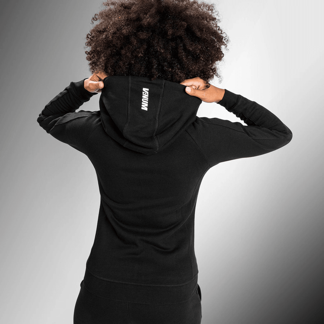 venum Essential Naisten Huppari - Musta Ei Ole Vain Huppari; Se On Statement-vaate. Olitpa Sitten Menossa Salille Tai Rentoutumassa Kotona, Tämä Huppari Tarjoaa Tyylikkään Kerroksen, Joka Parantaa Mitä Tahansa Asua. Sen Kevyt Kangas Takaa Hengittävyyden, Kun Taas Vetoketjuominaisuus Mahdollistaa Helpon Pukemisen Ja Riisumisen.
