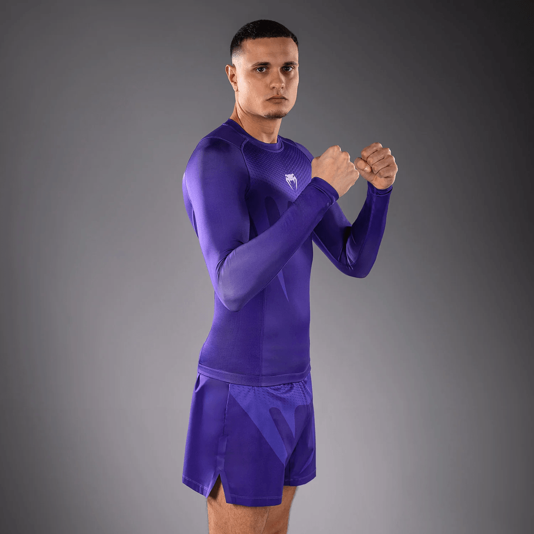 venum No Gi Rashguards - Violetti On Varusteesi Painimiseen Ja Maatyöhön. Sen Pitkähihainen Muotoilu Tarjoaa Kattavan Suojan, Mikä Tekee Siitä Täydellisen Sekä Harjoitteluun Että Kilpailuympäristöihin. Korkealaatuisista Materiaaleista Valmistettu Rashguard Tarjoaa Erinomaisen Lihaspuristuksen, Joka Ei Vain Paranna Suorituskykyäsi, Vaan Myös Auttaa Nopeammassa Palautumisessa.