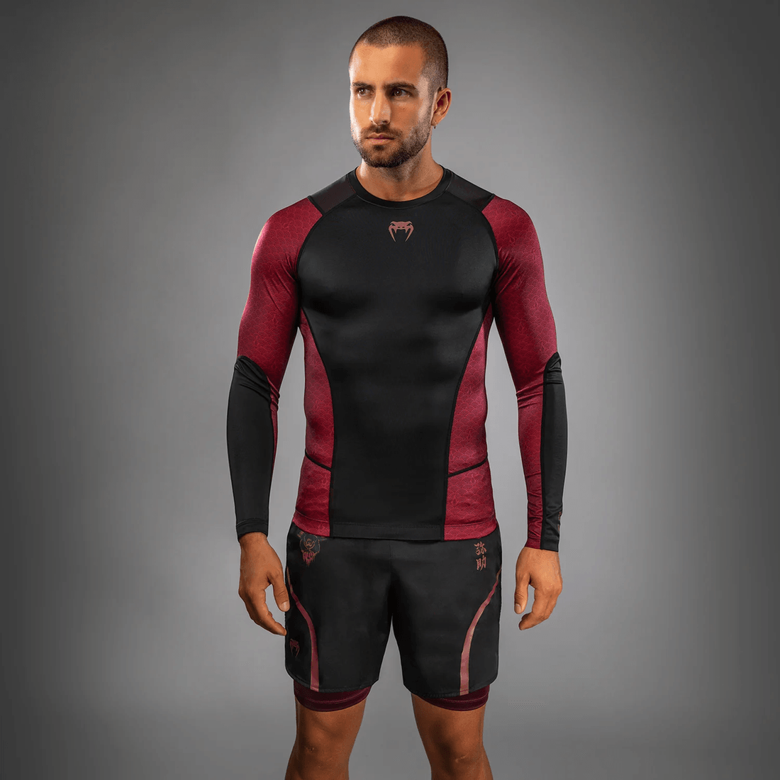 esittelemme Venum X Assassin’s Creed Shadows Miesten Pitkähihaisen Rashguardin Burgundin/mustan Värissä, Suunniteltu Taistelijoille Ja Faneille. Tämä Eksklusiivinen Yhteistyö Ubisoftin Kanssa Juhlistaa Assassin's Creed: Shadows -pelin Julkaisua, Yhdistäen Pelikulttuurin Huippuluokan Taisteluvälineisiin.