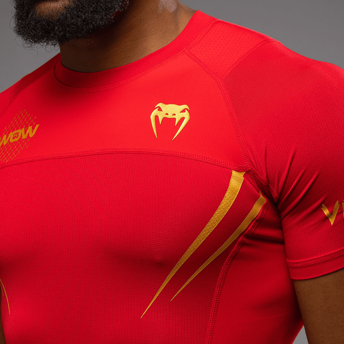 venum X Wow Fc Rashguard à Manches Courtes - Rouge Fureur/ Or