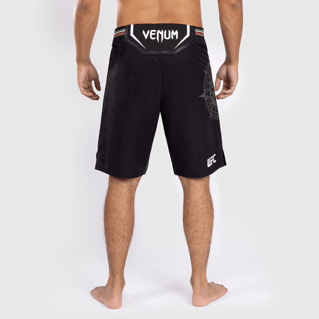 celana Pendek noche Ufc Oleh Venum Celana Pendek Pertarungan Pria Asli - Fit Panjang - Hitam Memiliki Desain Mencolok Yang Menggabungkan Warna Bendera Meksiko—merah, Hijau, Dan Hitam—melambangkan Kebanggaan Rakyatnya. Grafik Batu Matahari Menampilkan Mahkota Megah Dari Tōnatiuh, Menjadikan Celana Pendek Ini Bukan Hanya Pakaian Tetapi Juga Pernyataan Warisan Budaya.