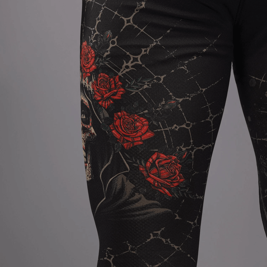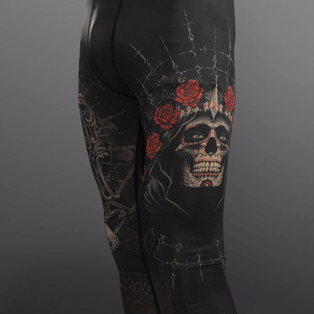 dengan Skema Warna Hitam Dan Emas Yang Berani, Spats Ini Menampilkan Desain Gothic Yang Rumit Yang Menghormati La Santa Muerte. Pinggang Elastis Memastikan Pas Yang Aman, Memungkinkan Anda Untuk Fokus Pada Performa Anda Tanpa Gangguan. Maksimalkan Potensi Anda Dan Tunjukkan Gaya Unik Anda Dengan Spats Yang Mencolok Ini.