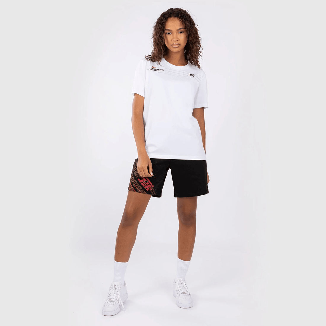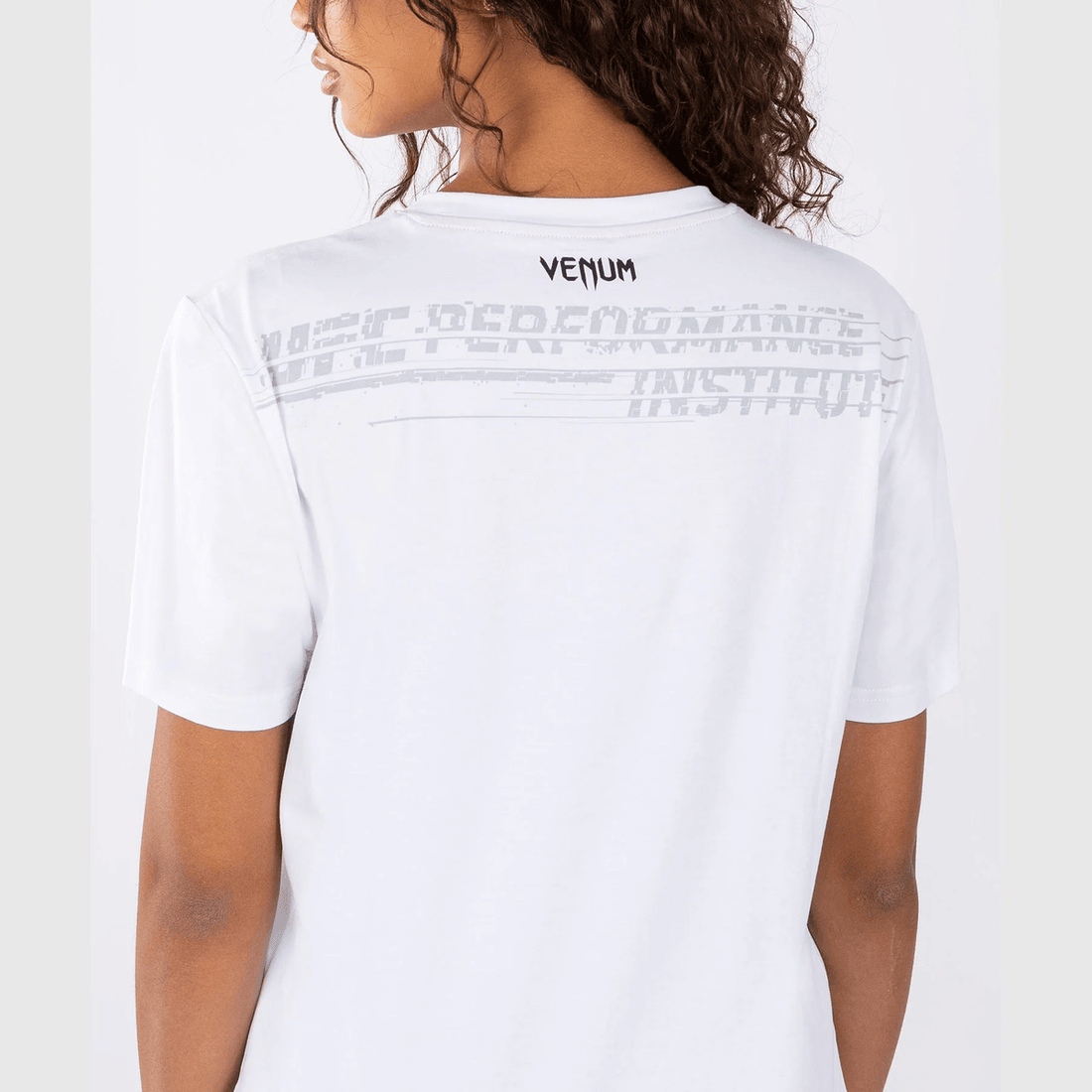 la ufc Venum Performance Institute 2.0 Maglietta Da Donna - Bianca è Progettata Per Coloro Che Richiedono Sia Stile Che Prestazioni. Che Tu Stia Allenandoti In Palestra O Rilassandoti Nel Weekend, Questa Maglietta Ti Copre. Abbinala Perfettamente Ai Leggings O Ai Pantaloni Corti Da Donna Della Stessa Collezione Per Un Look Atletico Completo.