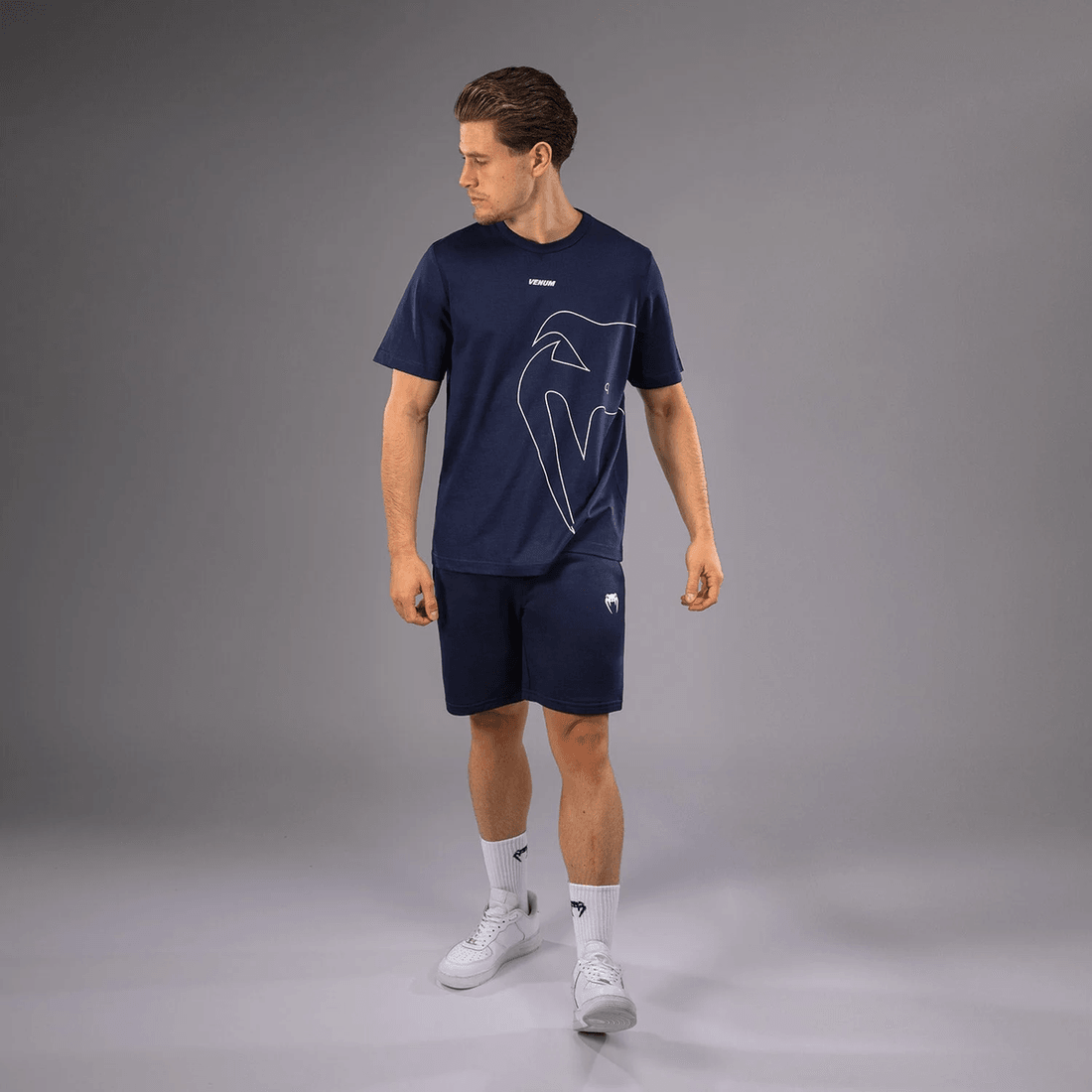 fai Una Dichiarazione Con La maglietta Venum Giant Connect In Blu Navy. Questa Stilosa Maglietta Grafica Presenta Un Design Audace Che Mette In Mostra Il Nostro Iconico Logo A Testa Di Serpente, Ingrandito In Un Bianco Sorprendente Sul Lato Sinistro. Realizzata In Cotone Di Alta Qualità, Questa Maglietta Combina Comfort Con Uno Stile Distintivo, Rendendola Un Must-have Per Qualsiasi Guardaroba Attivo.