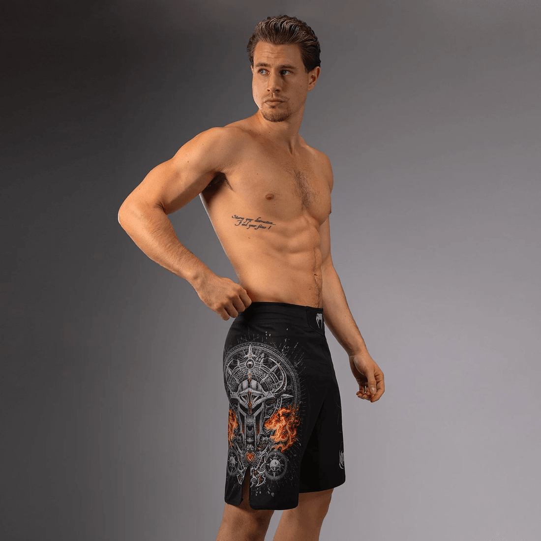 progettati Per Onorare I Combattenti Storici Dell'impero Romano, L'estetica Nera E Argento Non Solo Appare Elegante Ma Incarna Anche Lo Spirito Del Combattimento. Abbina Questi Pantaloni Da Combattimento Con Una Rashguard Coordinata Della Stessa Collezione Per Un Look Completo Che Mostra La Tua Dedizione Allo Sport.
