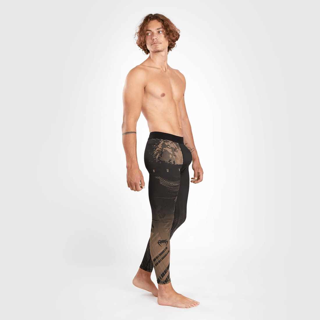 entra Nella Giungla Con I venum Gorilla Jungle Spats - Nero/sabbia, Progettati Per Elevare Il Tuo Allenamento Negli Sport Da Combattimento. Questi Leggings Performanti Sono Progettati Per Atleti E Combattenti Che Richiedono Durata E Libertà Di Movimento Nelle Loro Sessioni Di Grappling, Bjj E Mma.
