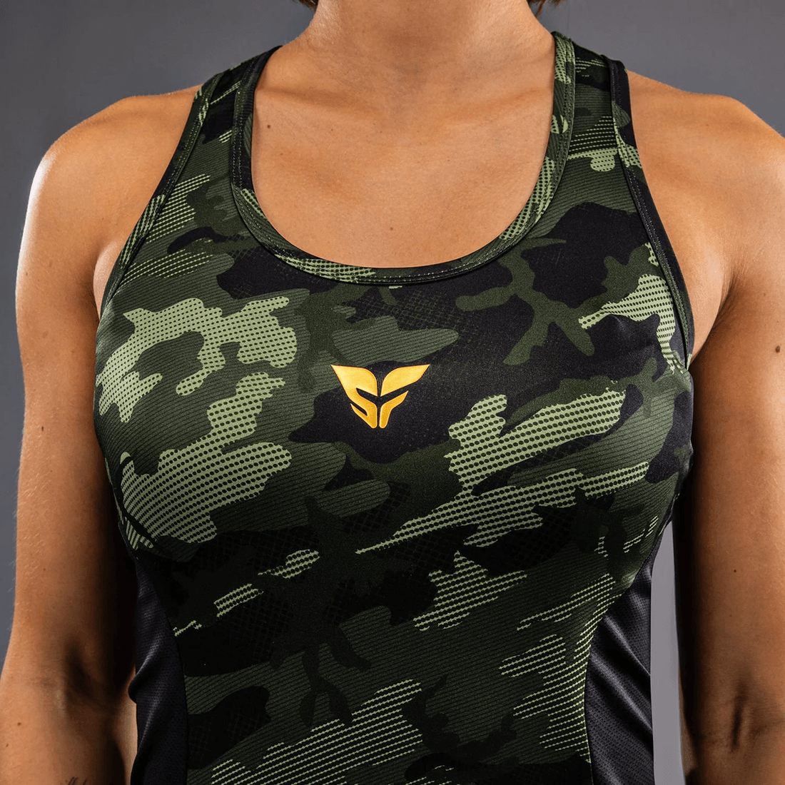 ヴェナム X ソフィア・ローズ レディース タンクトップ - フォレストカモは、格闘技と高強度トレーニングのために設計されています。フィットしたデザインが体に心地よくフィットし、自由な動きを可能にします。ジムに行くときも外出するときも、このタンクトップは激しい機能性とシックな美学を融合させています。