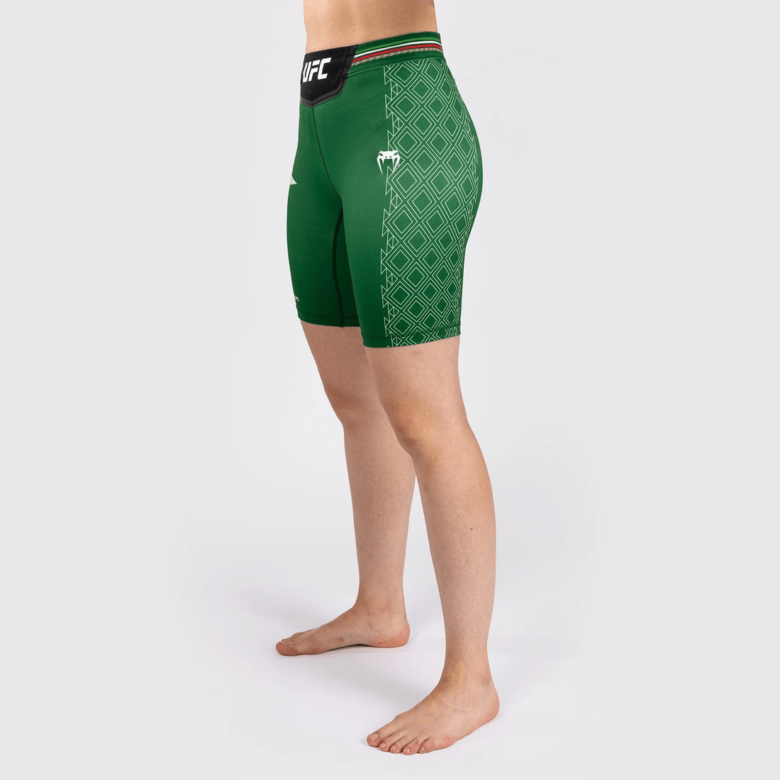 naktis Ufc By Venum Autentiškos Kovos Nakties Moterų Vale Tudo šortai - Ilgas Fitas - žalias Yra Ribotos Kolekcijos Dalis, Kurią Dėvi Ufc Sportininkai Per įspūdingą Nakties Ufc Renginį Las Vegase. Dizainas Pagerbia Modernią Meksikos Vėliavą Su Ryškiais Raudonos, žalios Ir Juodos Spalvų Deriniais, Simbolizuojančiais Nacionalinį Pasididžiavimą Ir Turtingą Meksikos Kultūrinį Paveldą.