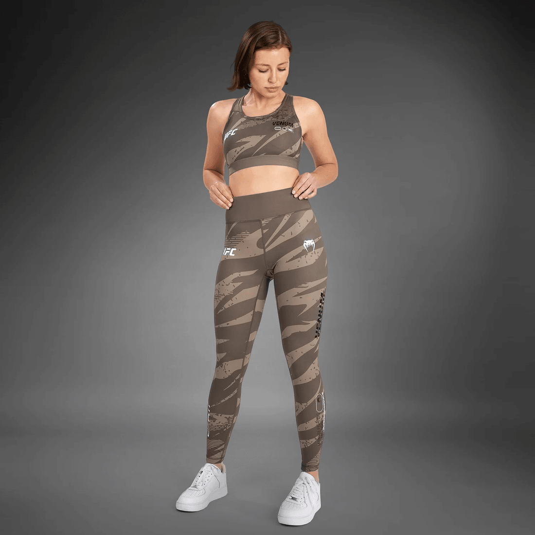 pakelkite Savo Treniruotes Su ufc Adrenalinas Pagal Venum Kovos Savaitės Moterų Pasirodymo Kelnėmis - Dykumos Kamufliažas. Sukurtos Aukšto Našumo Sportininkams, šios Kelnės Sujungia Stilių Ir Funkcionalumą, Užtikrindamos, Kad Atrodytumėte įspūdingai, Kai Stumiate Savo Ribas.