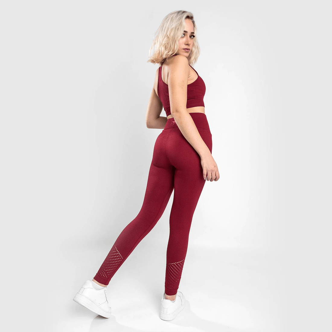 pakelkite Savo Treniruočių Drabužių Spintą Su venum Sparring Seamless 7/8 Leggingais Moterims Nuostabios Burgundiškos Spalvos. Sukurti Iš Minkščiausio Be Siūlių Audinio Ir Subtilių Aklųjų Detalių, šie Leggingai Prioritetą Teikia Jūsų Komfortui, Nesumažindami Stiliaus.
