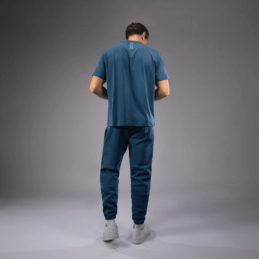 - smalka Zīmola Identitāte: Izbaudiet Mazu Tonālu Logotipu Krūtīs Un Logotipa Motīvu Kakla Aizmugurē.