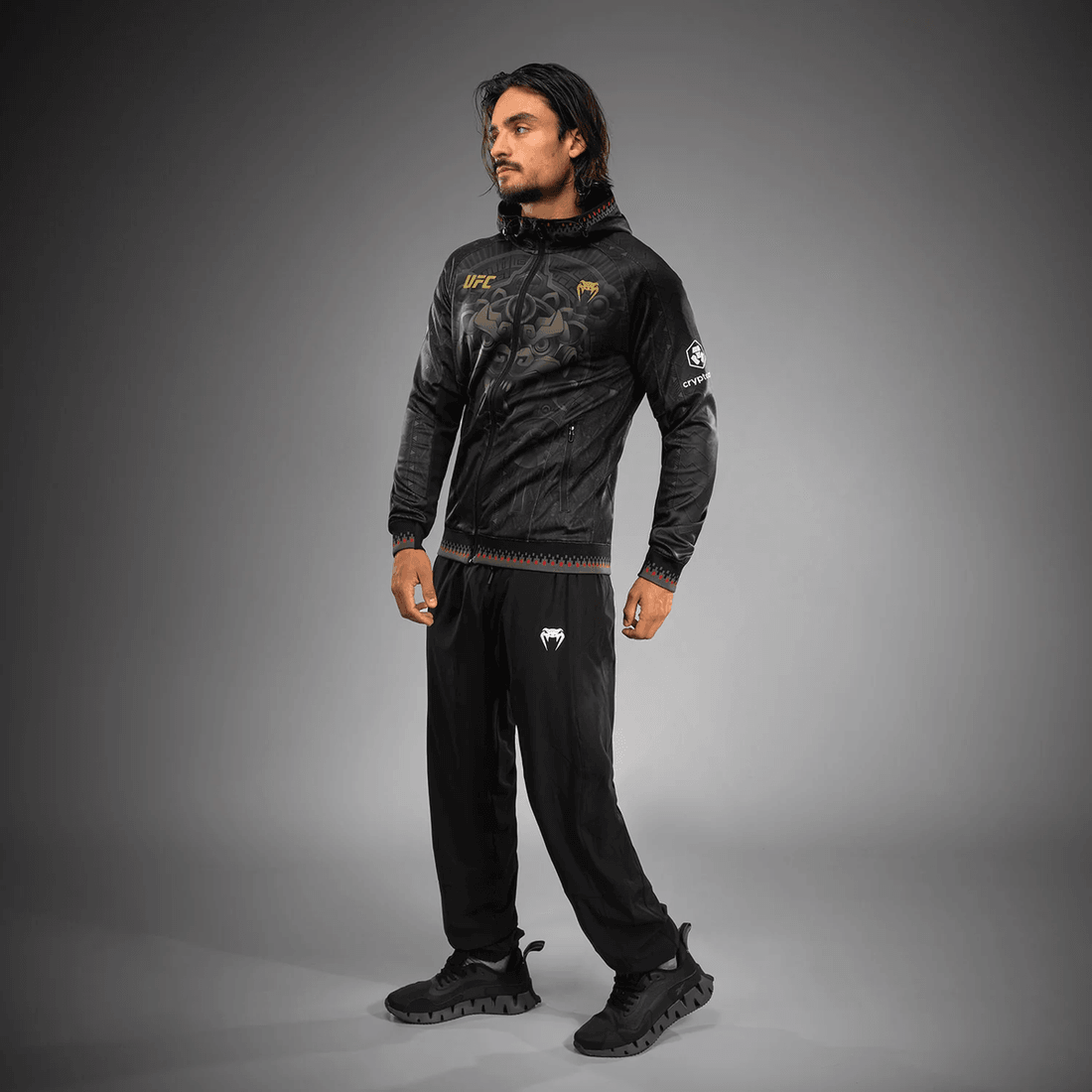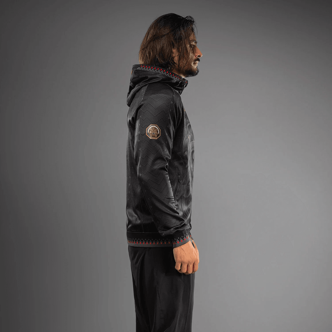 The Men’s Noche UFC 2.0 By Venum Black Authentic Fight Night Walkout Hoodie is more than just apparel; it’s a tribute to cultural pride. Worn by UFC athletes during the Noche UFC event in San Antonio, Texas, this limited-edition hoodie embodies the rich history and spirit of Mexico. The vivid design pays homage to ancient Aztec mythology, showcasing Tezcatlipoca as a protector of warriors.