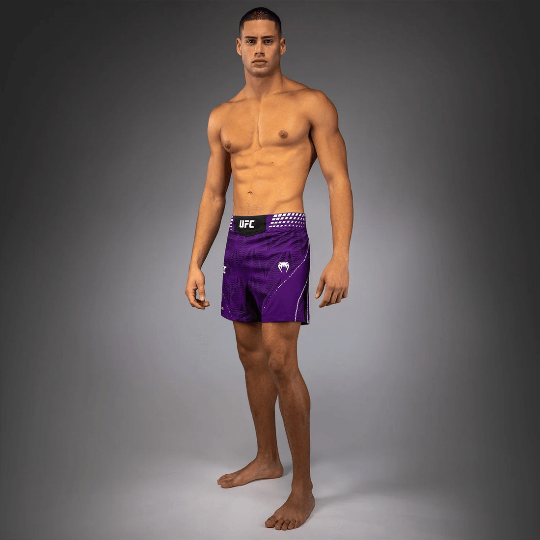Experience the ultimate in performance gear. Elevate your training with the Men's UFC Zenith by Venum Purple Authentic Fight Night Short Fit Fight Short today!