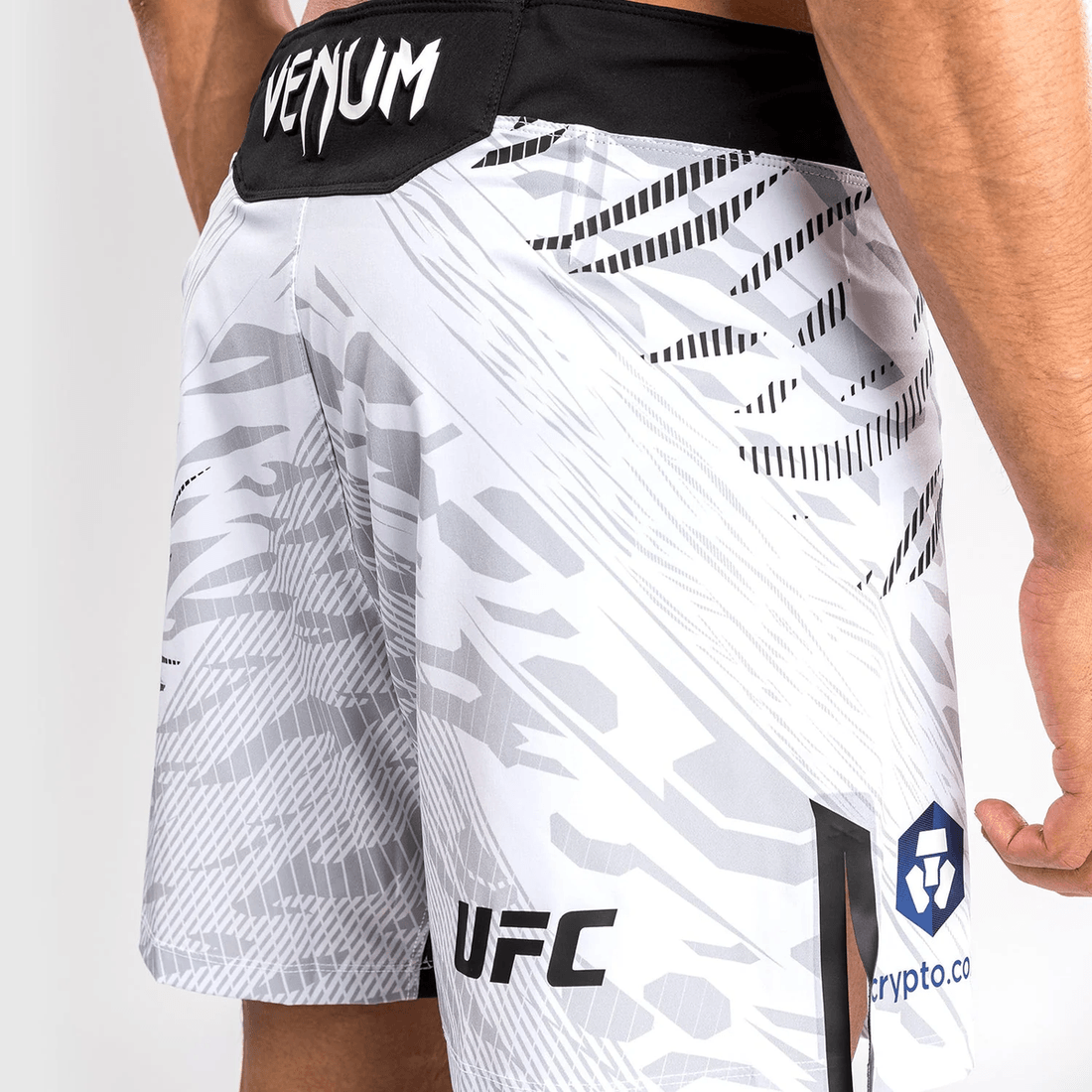 introduceren De ufc Fusion Van Venum Gepersonaliseerde Authentieke Fight Night Heren Vechtsportshort - Korte Pasvorm - Wit, Ontworpen Voor Krijgers Die Uitmuntendheid In De Octagon Eisen. Deze Vechtsportshorts Combineren Geavanceerde Prestatiematerialen Met Opvallende, Oerminstinctontwerpen, Zodat Je Er Op Je Best Uitziet En Je Ook Zo Voelt Tijdens Elke Ronde.
