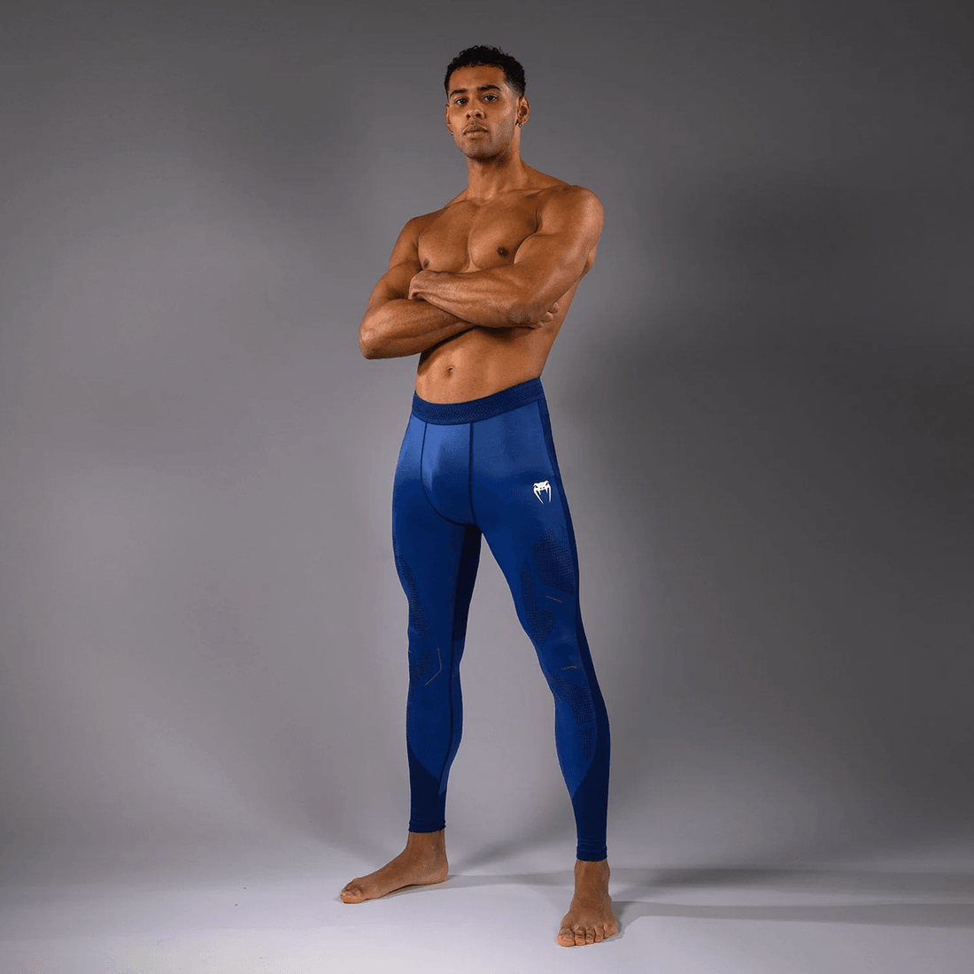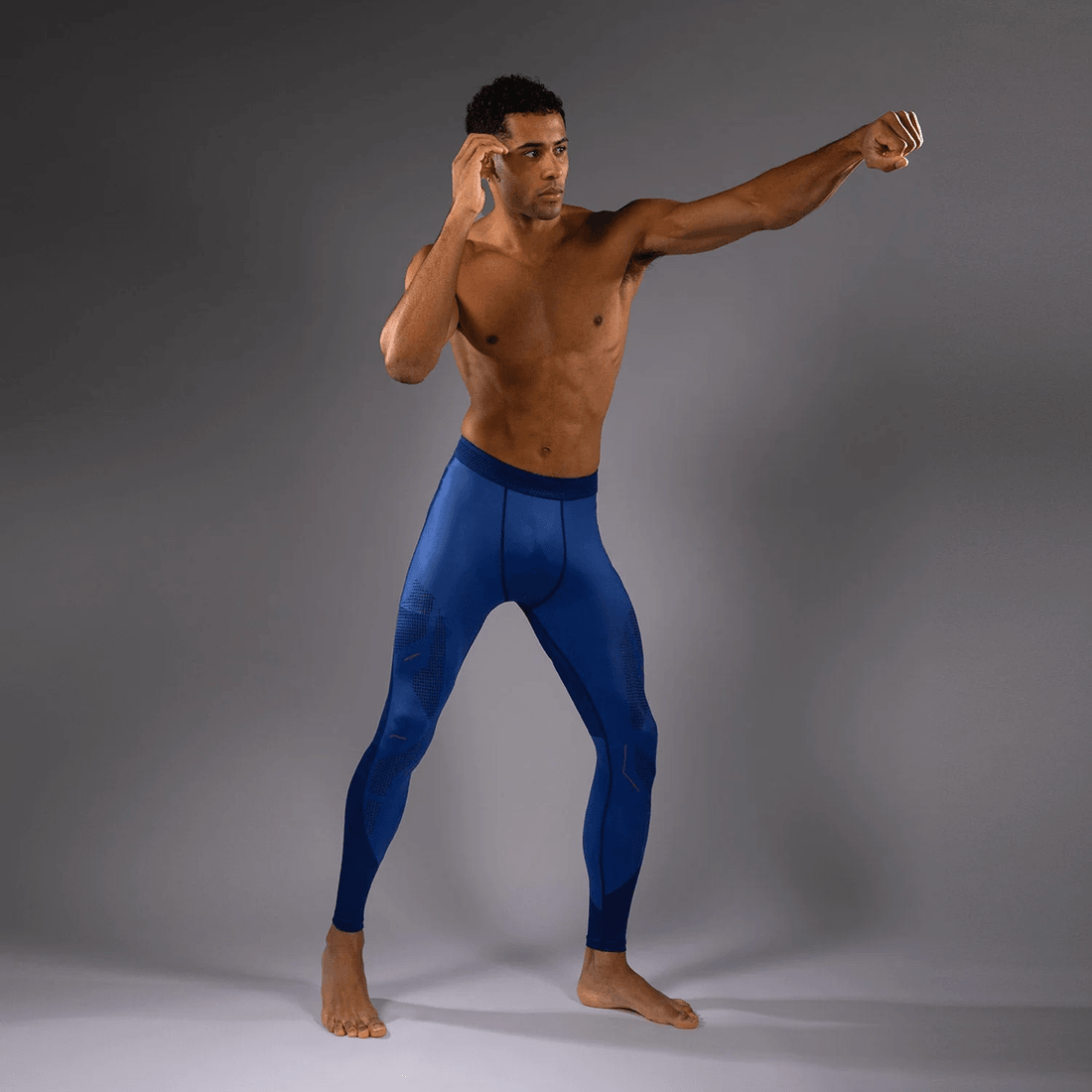 de venum Technical 3.0 Spats - Nachtblauw Zijn Gemaakt Van Lichtgewicht En Ademende Materialen Die Een Compressieve Pasvorm Bieden, Wat Helpt Bij Het Verminderen Van Spiervermoeidheid. Of Je Nu Traint In Braziliaans Jiu-jitsu, Grappling Of Mma, Deze Performance Tights Ondersteunen Je Bewegingen Terwijl Ze Optimaal Comfort Garanderen.