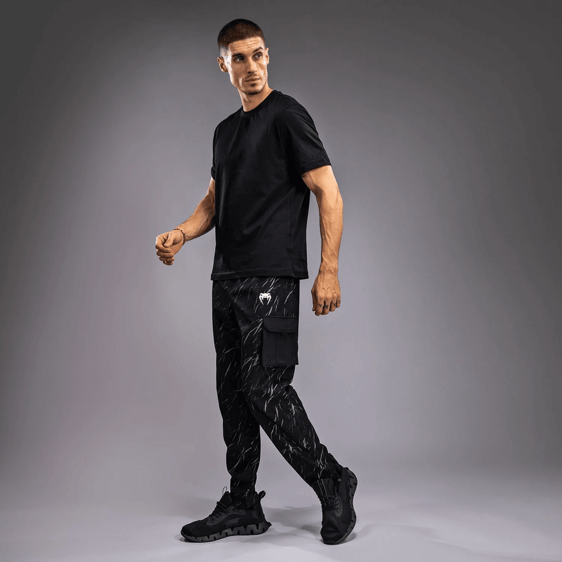 de venum Trooper Heren Trainingsbroek Combineren Functionaliteit En Modern Design, Waardoor Ze Perfect Zijn Voor Zowel Trainingen Als Casual Uitjes. De Unieke Zwart En Steen Zand Print Geeft Deze Broek Een Subtiele Maar Opvallende Uitstraling, Terwijl De Cargozakken Praktische Opbergruimte Bieden. Of Je Nu Naar De Sportschool Gaat Of Boodschappen Doet, Deze Broek Biedt Het Comfort En De Stijl Die Je Nodig Hebt.