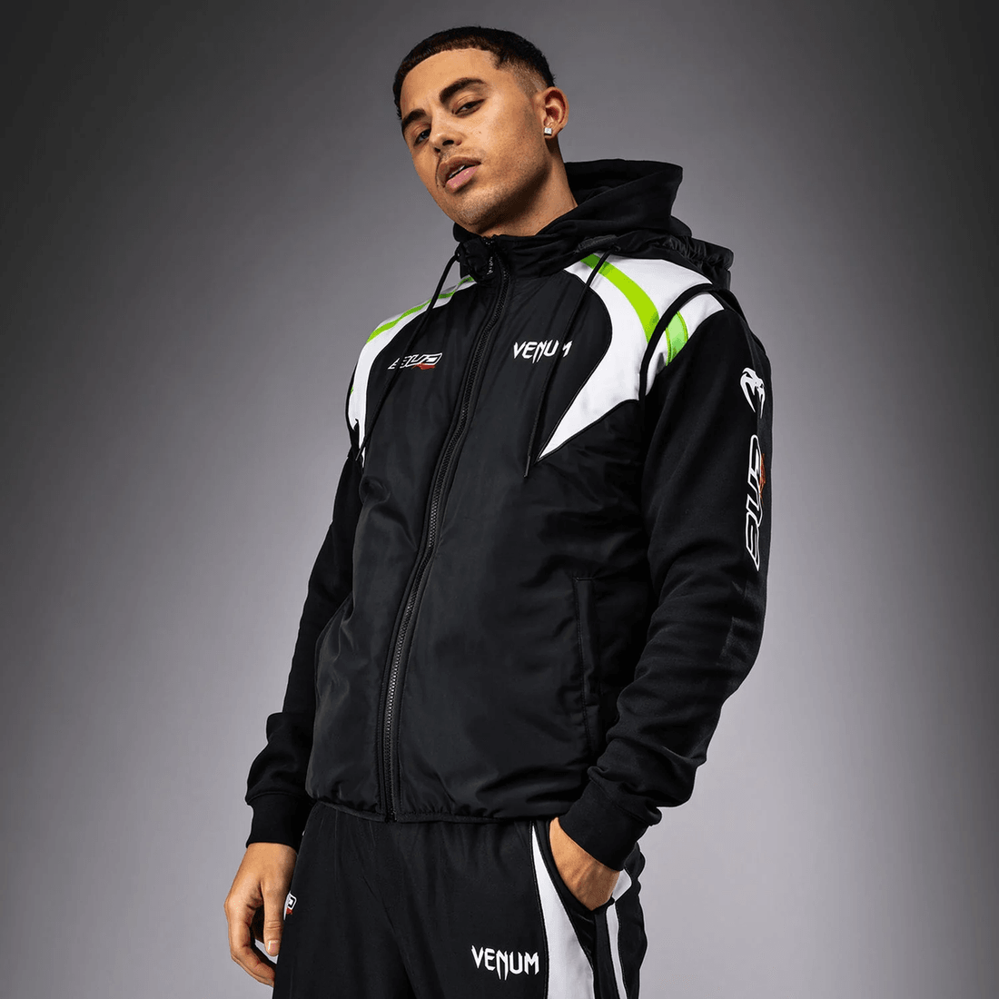 venum X Bud Racing Donsvest - Zwart/wit/limoengroen