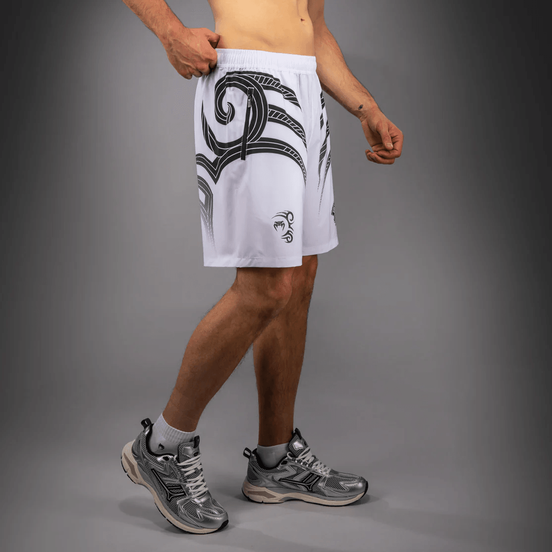de Venum X Mike Tyson Tiger Training Shorts Zijn Vakkundig Vervaardigd Voor Atleten Die Het Beste Eisen. Of Je Nu Naar De Sportschool Gaat, Sparren In De Ring, Of Gewichten Tilt, Deze Middellange Shorts Zijn Ontworpen Om Je Prestaties Te Verbeteren. Het Optisch Witte En Diep Zwarte Kleurenschema Ziet Er Niet Alleen Opvallend Uit, Maar Weerspiegelt Ook De Kracht En Precisie Van Een Tijger.