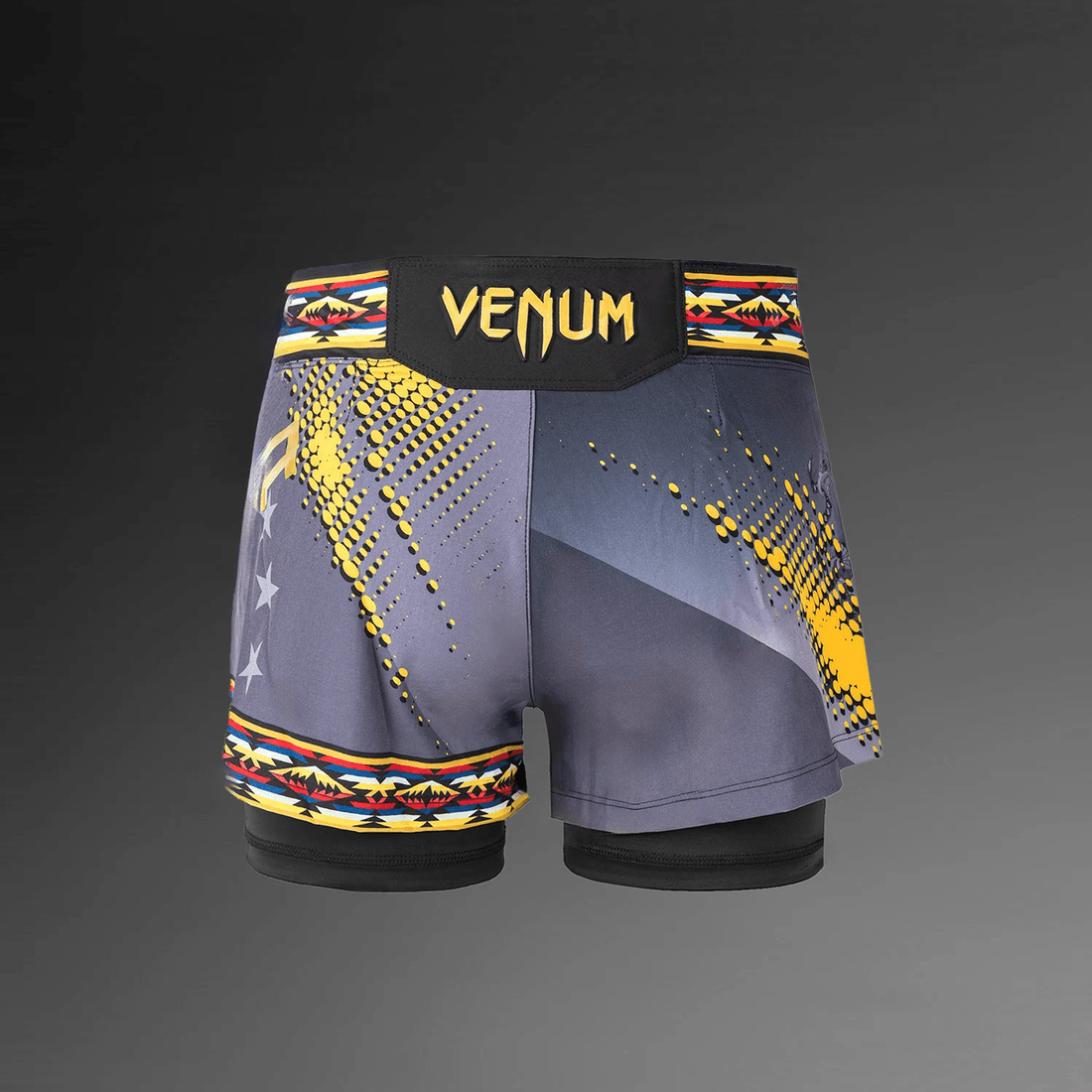 de vrouwen Ufc Unrivaled By Venum Zwarte Julianna Peña Short Fit Fight Short Is Meer Dan Alleen Sportkleding; Het Is Een Statement Stuk Dat De Diverse Wortels Van Julianna Peña Eert. De Shorts Hebben Een Opvallend Ontwerp Dat Elementen Van Nationale Vlaggen En Traditionele Patronen Incorporeert, Waardoor Ze Net Zo Visueel Aantrekkelijk Als Functioneel Zijn.