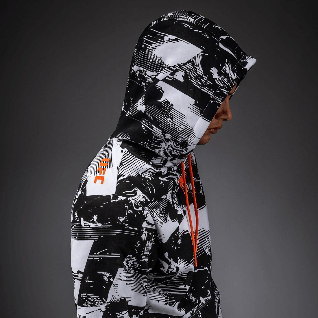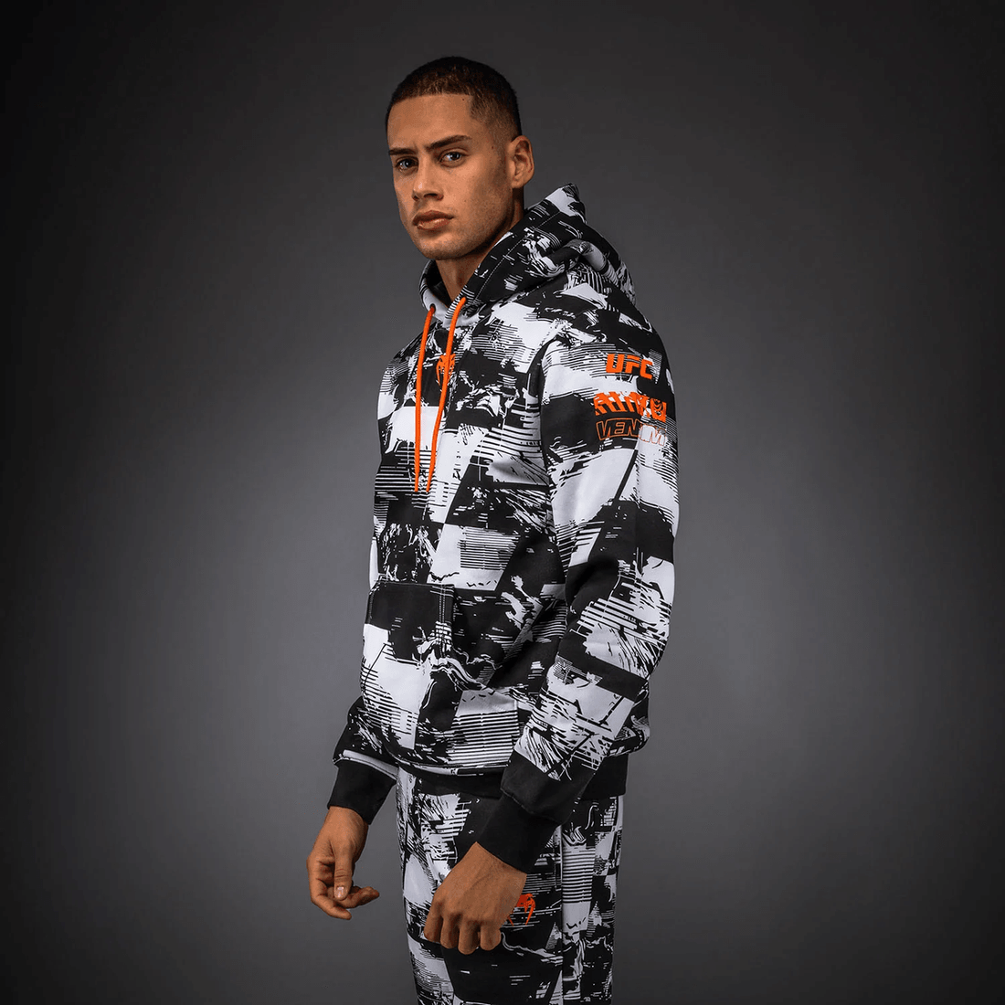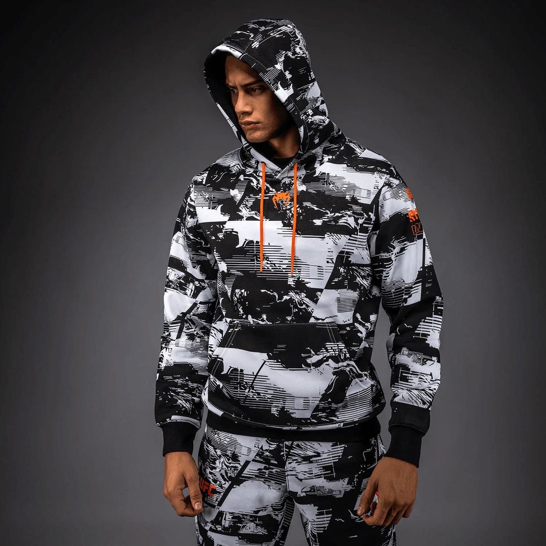 menns Ufc Zenith Av Venum Hvit Autentisk Fight Week Pullover Hettegenser Er Mer Enn Bare En Hettegenser; Det Er Et Uttrykk For Forpliktelse Til Din Trening Og Fitnessmål. Enten Du Varmer Opp Til En Kamp Eller Bare Er På Vei Ut, Gir Denne Hettegenseren Den Perfekte Blandingen Av Stil Og Funksjonalitet.
