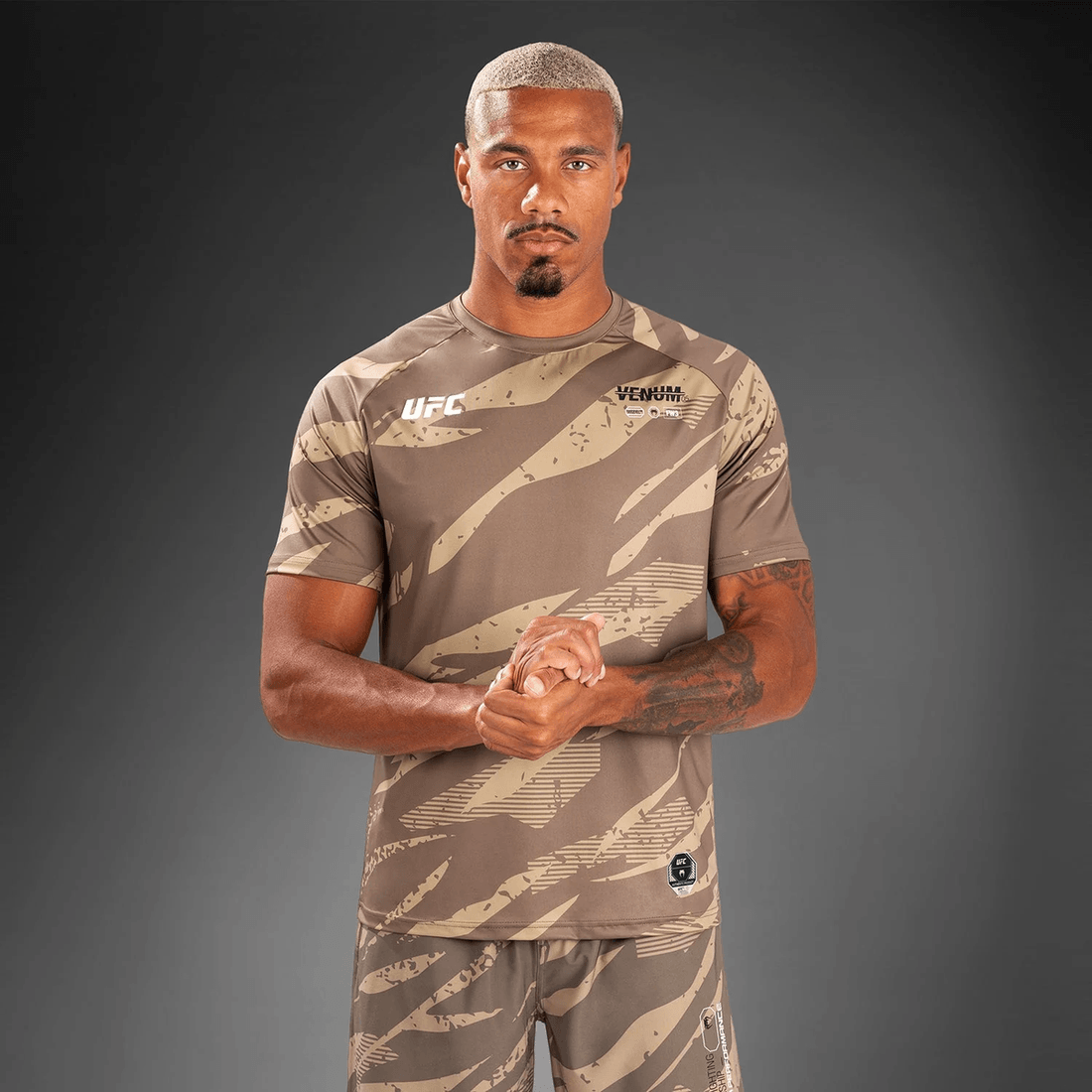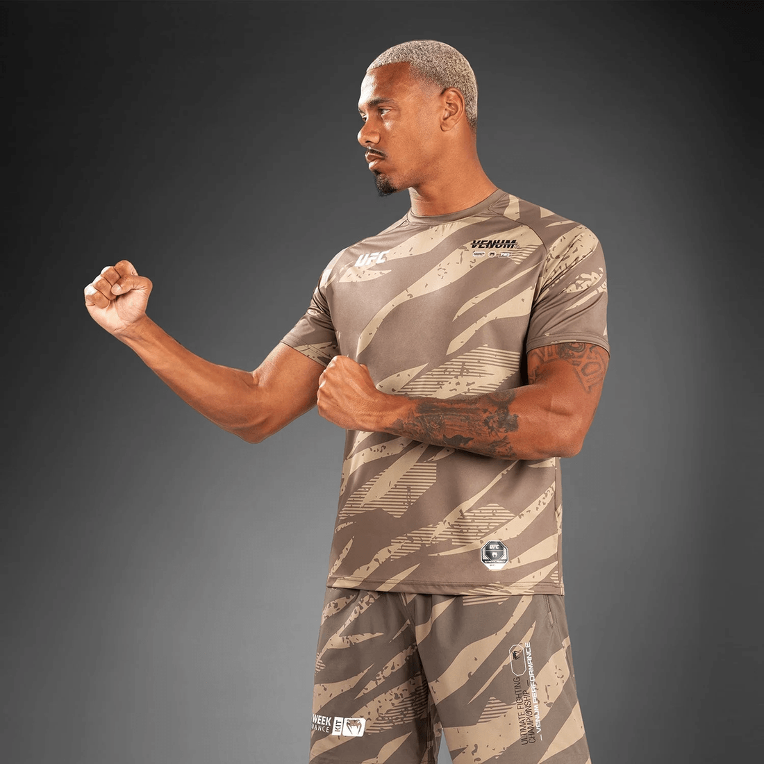- odważny Wzór Kamuflażu: Wyróżnij Się Uderzającym Nadrukiem Kamuflażowym Z Wyraźnymi Logo Venum I Ufc.