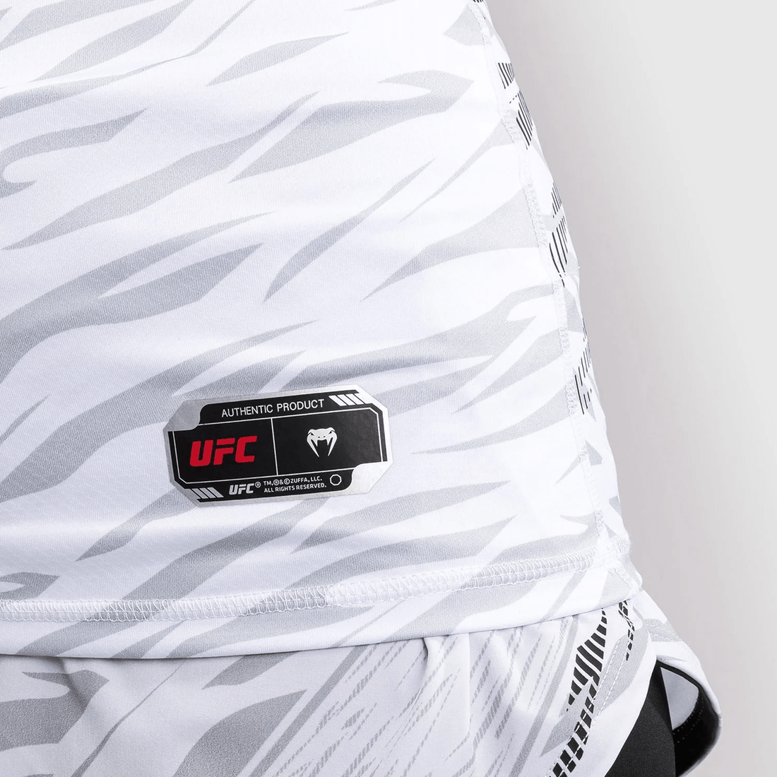 podnieś Swoje Sesje Treningowe Z autentycznym Dopasowanym Topem Ufc Fusion By Venum Na Noc Walki Dla Kobiet Z Wbudowanym Biustonoszem - Biały. Zaprojektowany Dla Zaciętych Sportowców, Ten Top łączy Zaawansowane Tkaniny O Wysokiej Wydajności Z Uderzającymi Elementami Designu, Zapewniając, że Będziesz Wyglądać I Czuć Się Niepowstrzymana W Oktagonie.