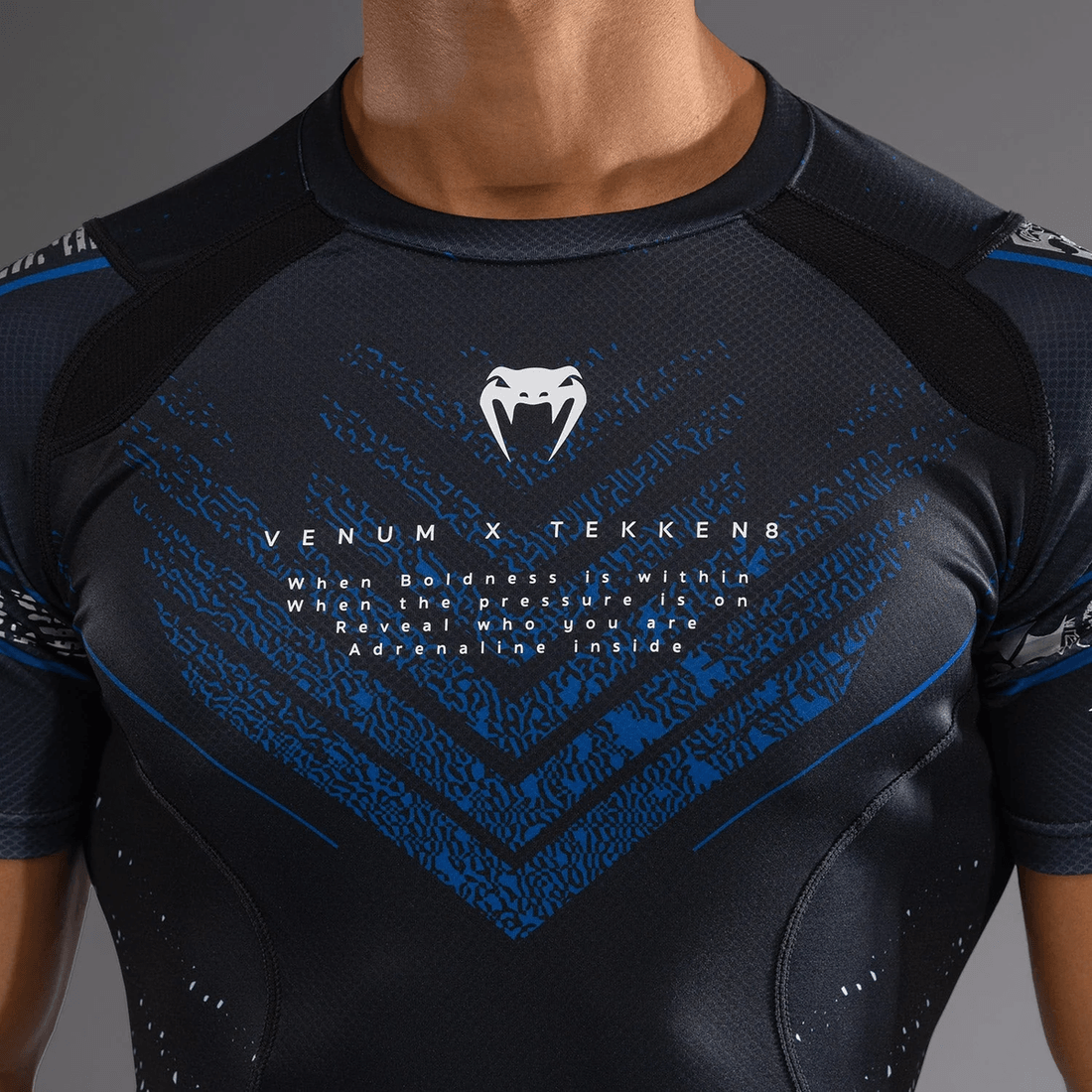 wejdź Do Ringu W Rashguardzie Venum X Tekken 8 - Paul Phoenix W Uderzającym Czarnym I Niebieskim Kolorze. Ta Premium Odzież Sportowa Celebruje Ikoniczny Tekken 8, Pozwalając Ci Wcielić Się W Ducha Ulubionego Przez Fanów Bohatera, Paula Phoenixa. Podnieś Swoje Treningi I Doświadczenia Z Grami Dzięki Temu Niezbędnemu Elementowi!