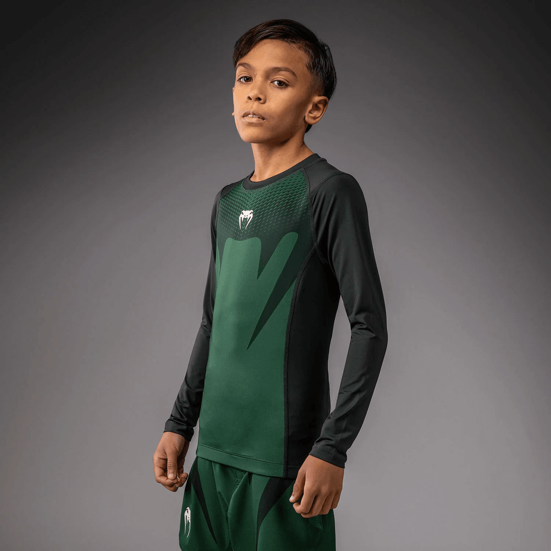 rashguard De Manga Longa Venum Attack Kids - Verde Floresta/ Off White