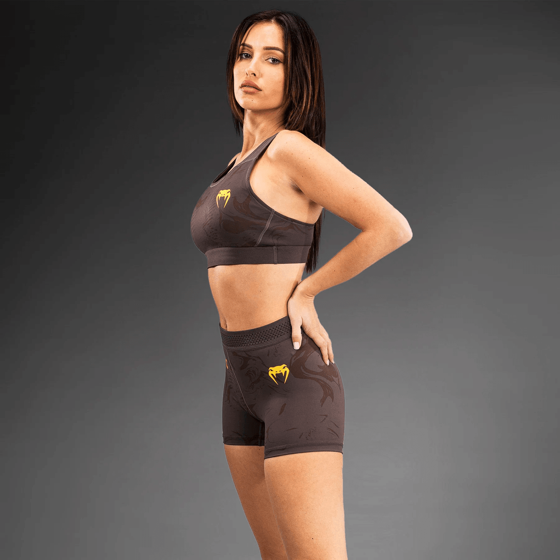 îmbunătățește-ți Experiența De Antrenament Cu ufc Fusion By Venum Fight Week Pantaloni Scurți Vale Tudo Pentru Femei în Maro Pământiu. Acest Articol Inovator De îmbrăcăminte Combină țesături De înaltă Performanță Cu Un Design Impresionant, Perfect Pentru Sportivii Dedicați Care Se Pregătesc Pentru Intensitatea Nopții De Luptă.
