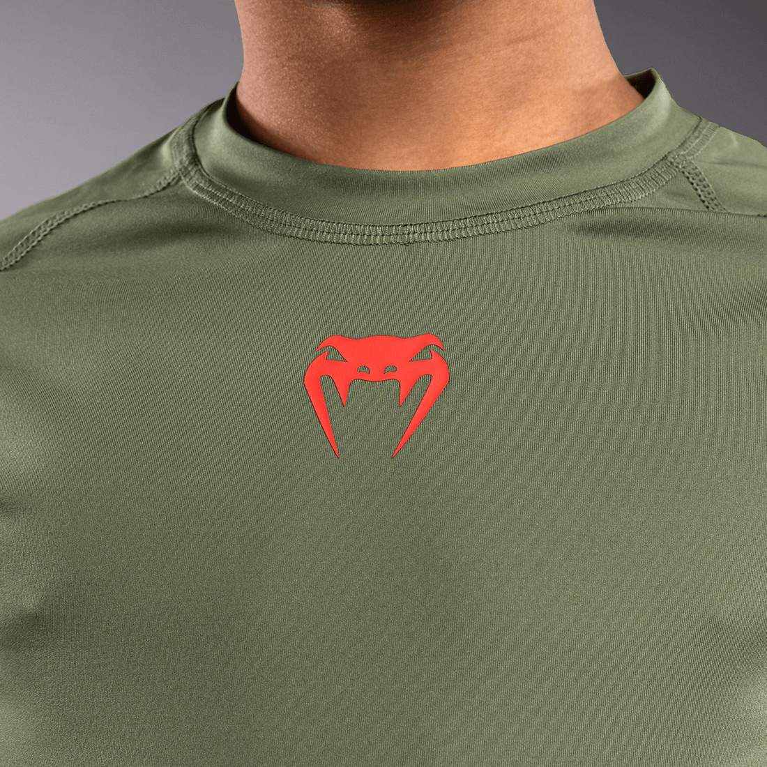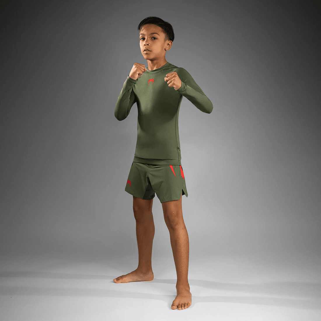 descoperiți Rashguard-urile Cu Mâneci Lungi Venum Contender Pentru Copii - Verde Militar/portocalie