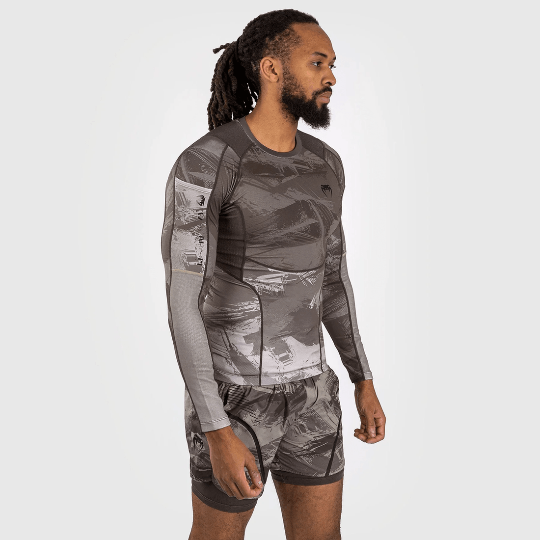 îmbunătățește-ți Antrenamentul Cu venum Electron 3.0 Rashguard Cu Mânecă Lungă în Nisip. Proiectat Pentru Sportivi și Luptători, Acest Rashguard Este Perfect Pentru Grappling, Bjj și Mma. Experimentează Un Confort și O Protecție De Neegalat în Timpul Antrenamentelor Tale.