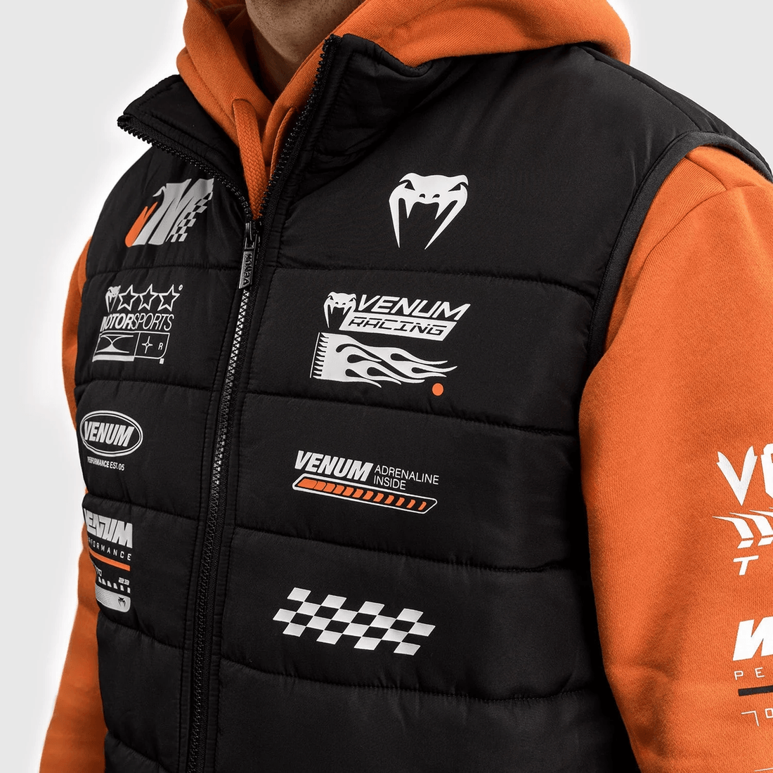 жилет Venum Motorsport - глубокий черный создан для многослойности, что делает его идеальным дополнением к худи из той же коллекции. его легкий дизайн обеспечивает вашу подвижность, сохраняя при этом безупречный стиль. премиум материалы жилета обеспечивают долговечность, что делает его подходящим как для повседневной носки, так и для высокоинтенсивных активностей.