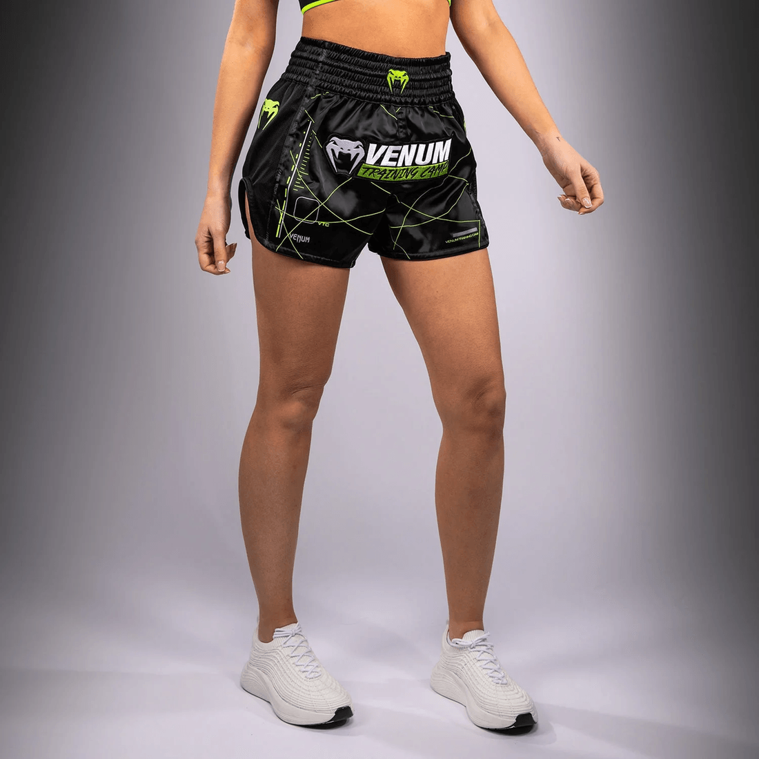 повышайте качество своих тренировок с шортами для муай тай Venum Training Camp 4.0 черного/неонового зеленого цвета. разработанные для чемпионов, эти высокопроизводительные шорты идеально подходят для улучшения вашей практики муай тай. испытайте непревзойденный комфорт и свободу движений, когда вы наносите удары и тренируетесь.