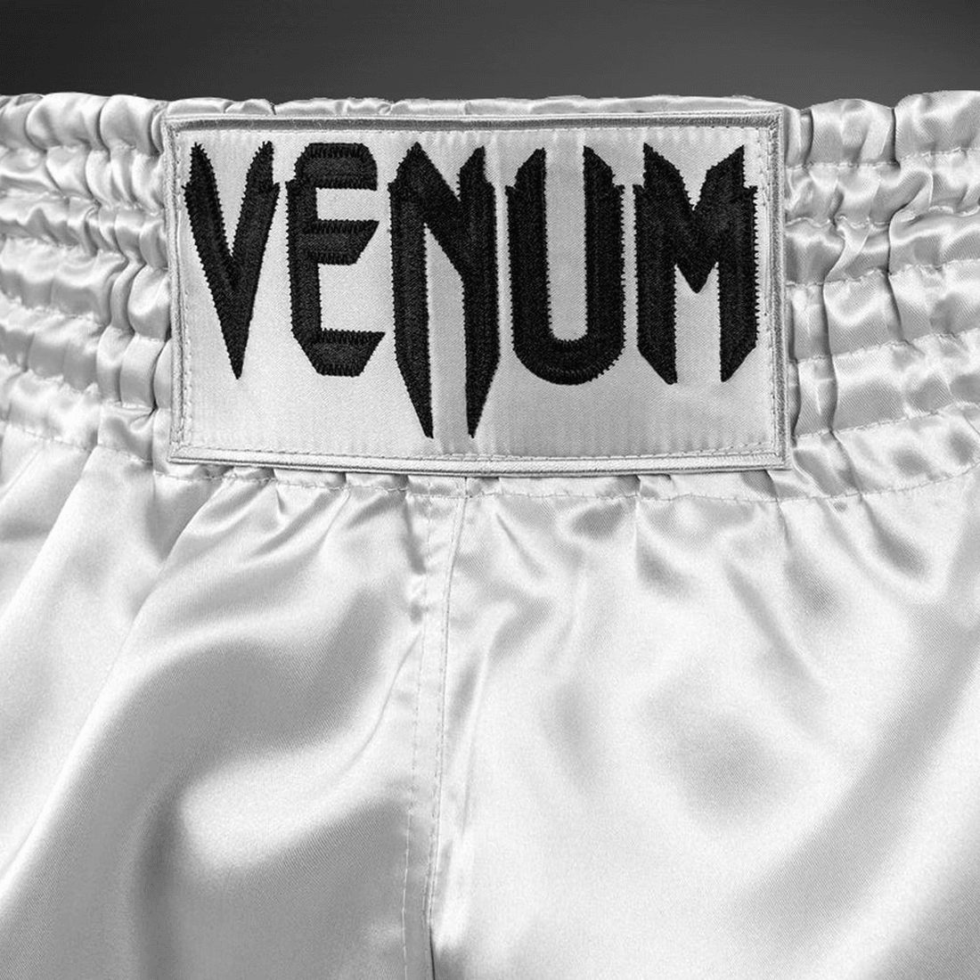 venum Classic Muay Thai šortky - Strieborné/čierne Sú Odborným Spôsobom Navrhnuté Na Podporu Každého Vášho Pohybu. ľahká Polyesterová Tkanina Vás Udrží V Pohodlí, Pričom Poskytuje Odolnosť Potrebnú Pre Náročný Tréning. Premyslený Dizajn Obsahuje Bočné Rozparky, Ktoré Zvyšujú Váš Rozsah Pohybu, čo Vám Umožňuje Vykonávať Techniky S Presnosťou.