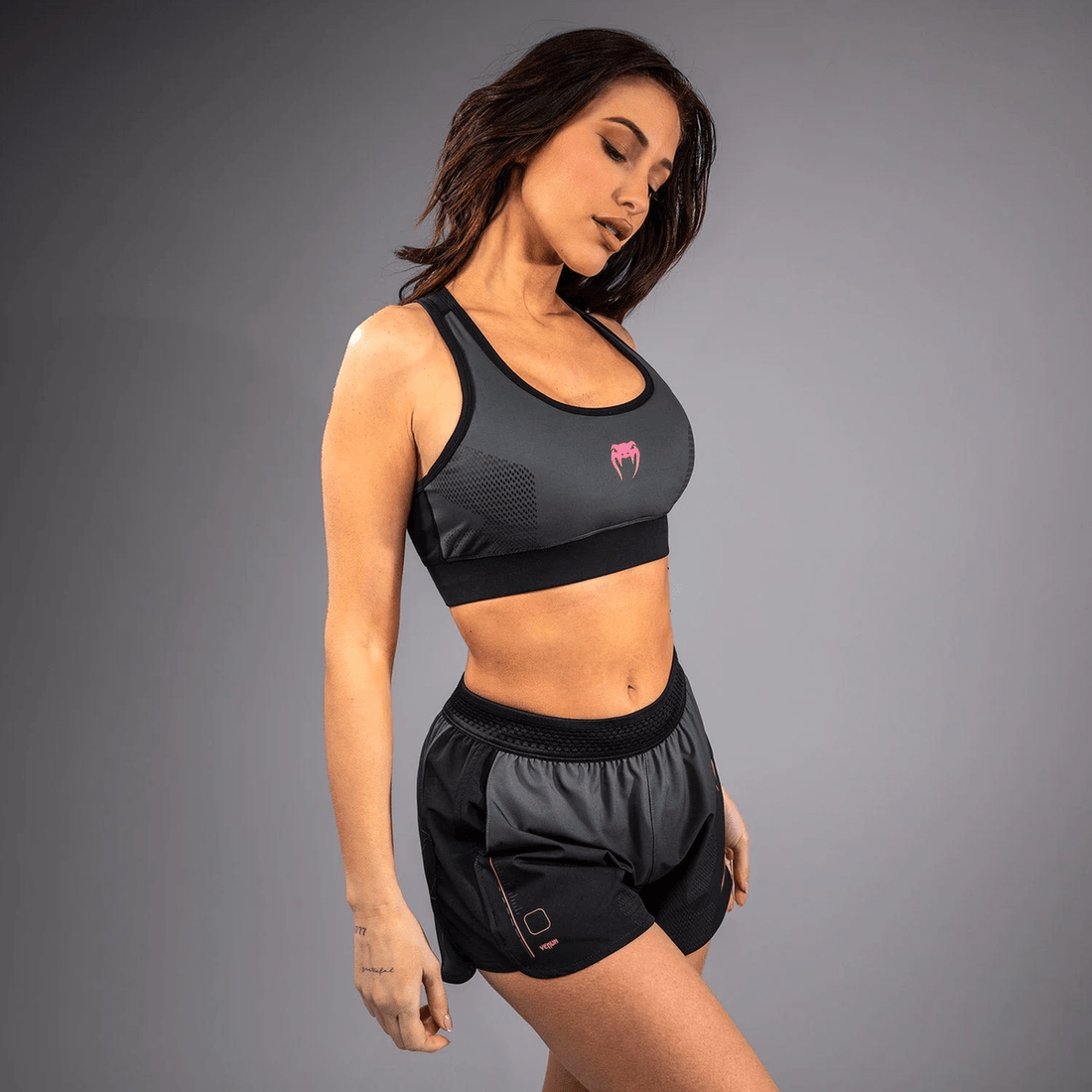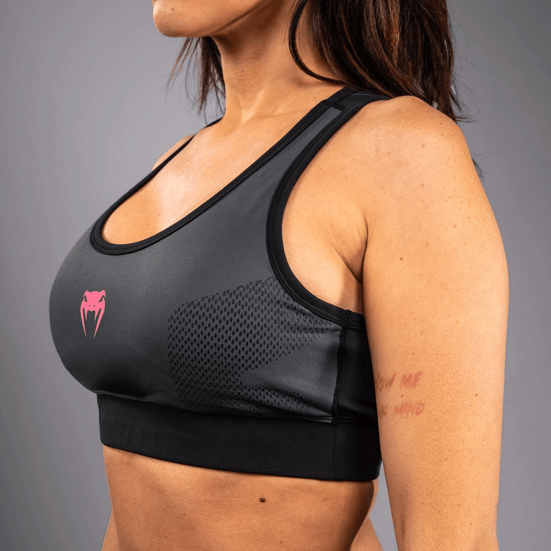 venum Tactical Xt Sports Bra Kombinerar Funktionalitet Med Stil, Vilket Säkerställer Att Du Känner Dig Självsäker Och Bekväm Under Varje Träning. Den Eleganta Svarta Och Stormgrå Färgskalan är Vackert Accentuerad Med Livfulla Rosa Grafik, Vilket Gör Den Till En Nödvändighet För Träning, Men Också Ett Modeuttalande. Denna Sport-bh är Konstruerad För Att Stödja Dina Träningsbehov, Oavsett Om Du är På Gymmet Eller Sparrar På Mattan.