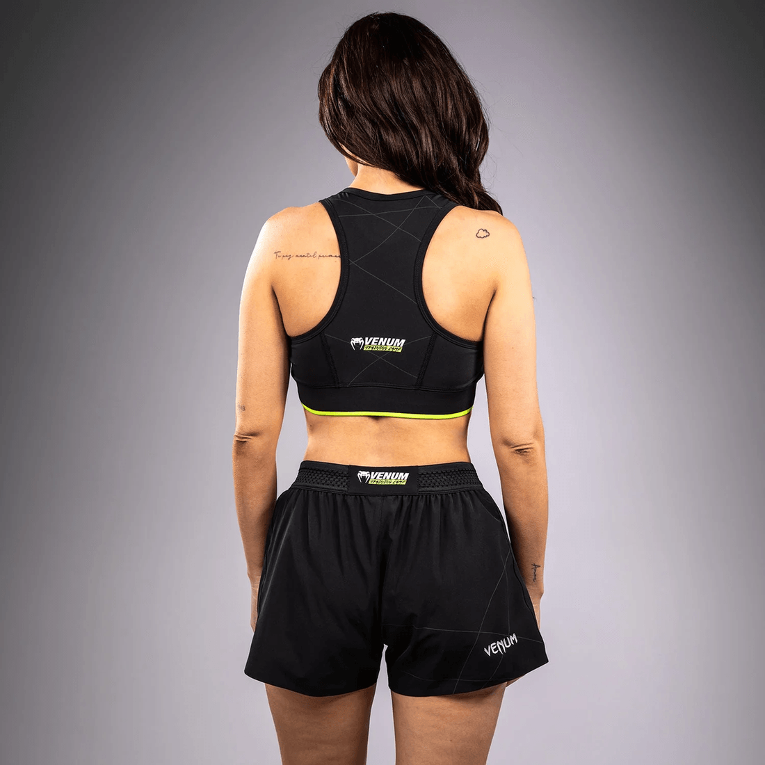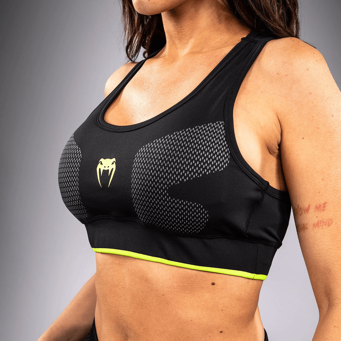 venum Training Camp 4.0 Sport-bh är Skickligt Skapad I Samarbete Med Venum Training Camp I Thailand, Vilket Säkerställer Att Den Uppfyller Kraven Från Seriösa Idrottare. Oavsett Om Du Tränar På Gymmet Eller Deltar I Kampsporter, Erbjuder Denna Sport-bh Den Perfekta Blandningen Av Stöd Och Stil. De Livliga Neon Gröna Detaljerna Ger En Touch Av Flair Till Din Träningsutrustning, Vilket Speglar Intensiteten I Din Träning.