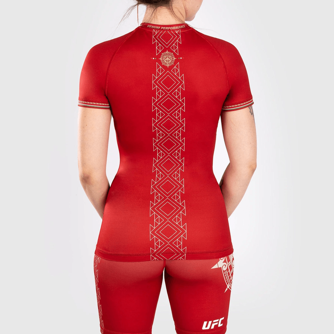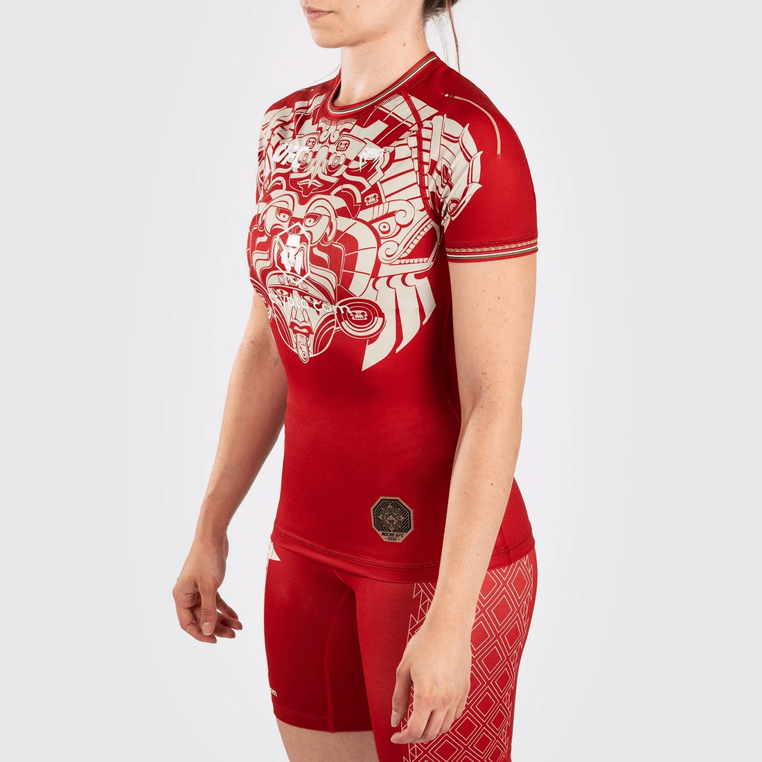 noche Ufc By Venum Gerçek Dövüş Gecesi Kadın Performans Kısa Kollu Rashguard - Kırmızı, Meksika Halkının Savaşçı Ruhunu Ve Dayanıklılığını Simgeleyen Beş Ilkel Aztek Tanrısını Içeren Cesur Bir Tasarım Sergilemektedir. Kırmızı, Yeşil Ve Siyahın Canlı Renkleri, Modern Meksika Bayrağına Saygı Duruşunda Bulunarak Her Sporcuda Ulusal Gururu Ateşler.