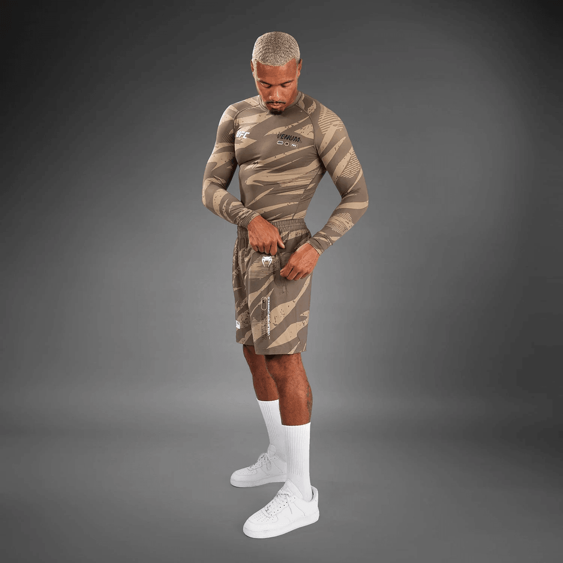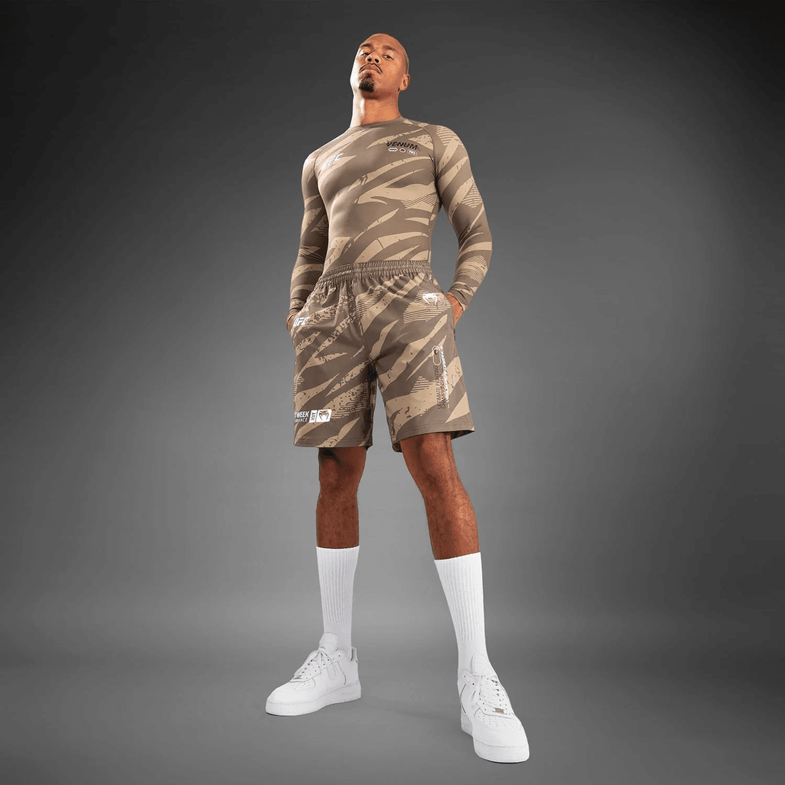 eğitim Seviyenizi ufc Adrenaline By Venum Fight Week Performans Erkek şortları - çöl Kamuflajı Ile Yükseltin. En Iyisini Talep Eden Sporcular Için Tasarlanan Bu şortlar, En Son Teknoloji Kumaşı Cesur Bir Stil Ile Birleştirerek Her Dövüşçü Için Vazgeçilmez Hale Getiriyor.